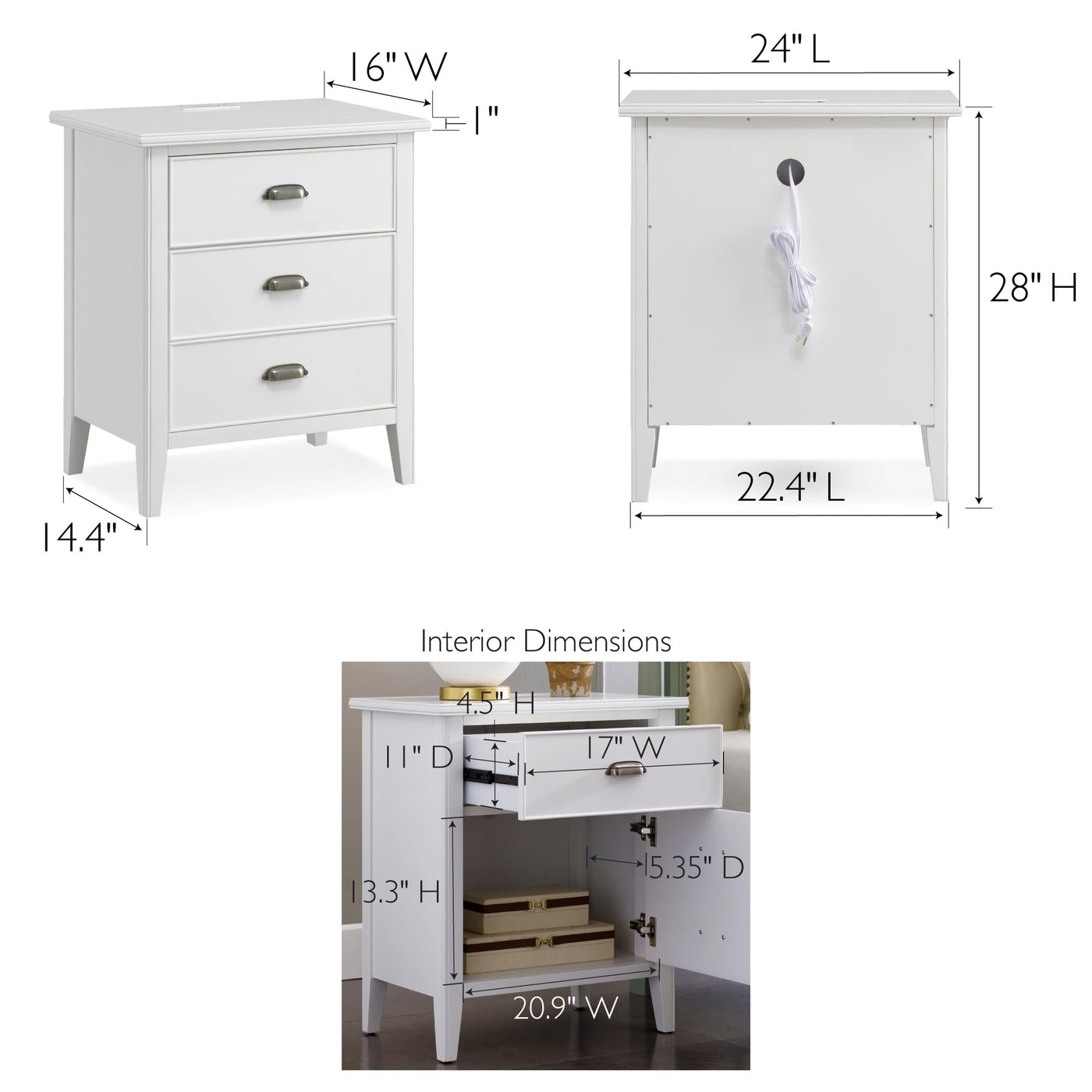 The Leick Home Laurent Side Table brings modern convenience and timeless style to your bedroom, living room, or small space. Designed with a flush-mounted fast-charging USB-C port, A/C outlet, and standard USB port, this nightstand allows you to charge phones, tablets, or power lamps with ease - eliminating the hassle of searching for outlets. The spacious tabletop offers ample room for everyday essentials like lamps, books, and d cor, while the upper drawer with soft-close glides provides discreet storage for remotes, chargers, or personal items. The lower hidden cabinet, styled with two faux drawers, offers additional storage to keep your space organized and clutter-free. Crafted from solid wood, this sturdy and durable nightstand is finished in a crisp white color that complements modern, farmhouse, and traditional d cor. Whether used as a nightstand, side table, end table, or accent table, its compact design enhances your space without overwhelming it - perfect for apartments, condos, and small living areas. Best of all, the Laurent Nightstand arrives fully assembled, so you can enjoy its benefits right away. Backed by Leick Home's 150+ years of craftsmanship and a 1-year limited warranty, this nightstand is a smart addition to any home.