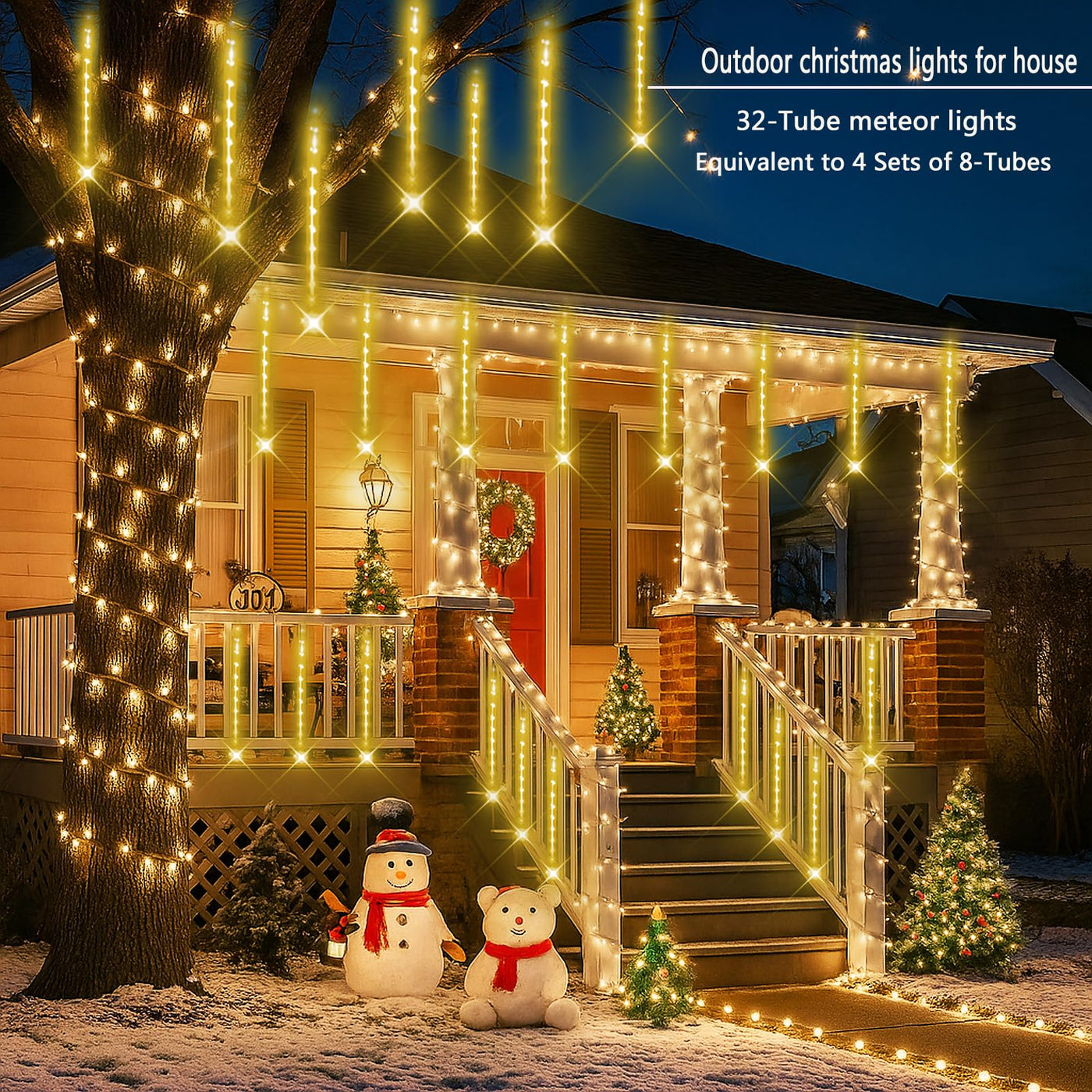 Lauzior Christmas Lights Outdoors 32 Tubes Meteor Shower Rain Lights - Lcicle Christmas Light Outdoor For Xmas Tree Wedding Party Holiday House Yard Decor Warmwhite
