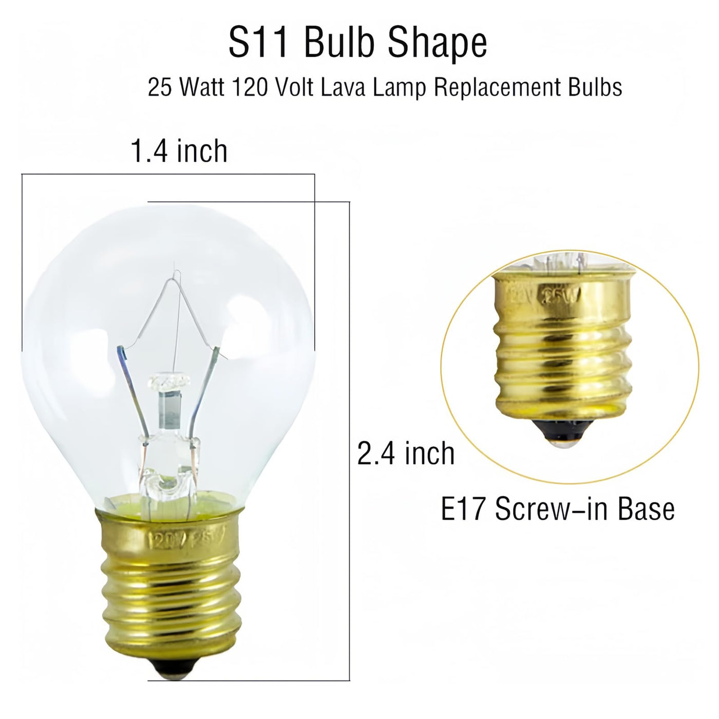 Lava Lamp Bulbs,25 Watt Original Replacement Bulbs For 14.5-Inch/20-Ounce Lava Lamp, High Temp Resistance, High-Output Heat S11