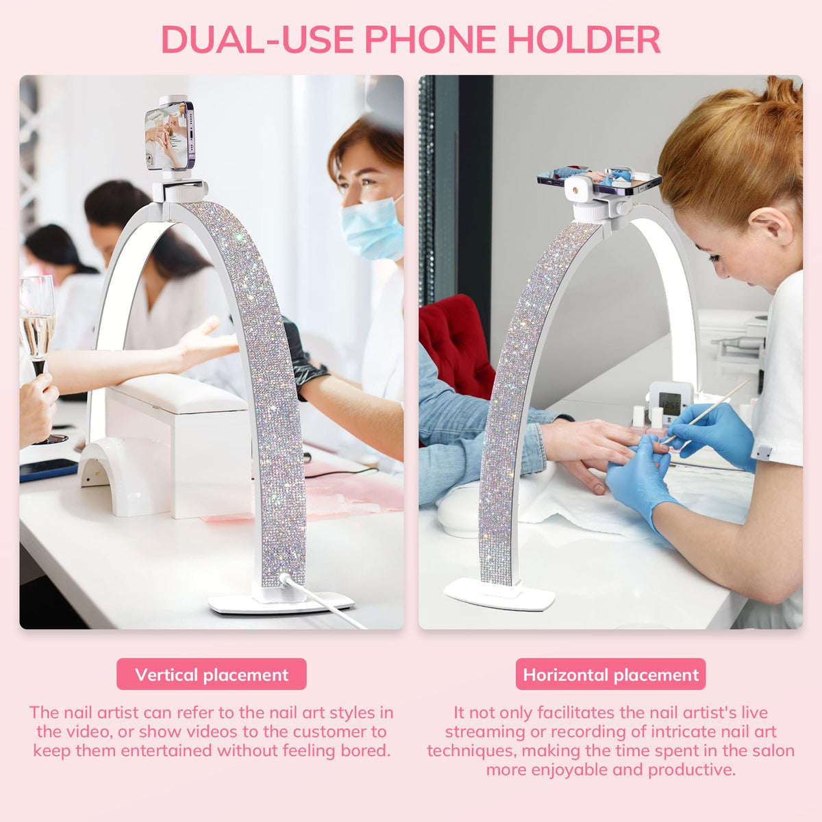 Lavinda Pro Nail Desk Lamp For Nail Techs - 3000-6000K Adjustable Half Moon Light With Phone Holder, 29In Foldable Nail Table Li
