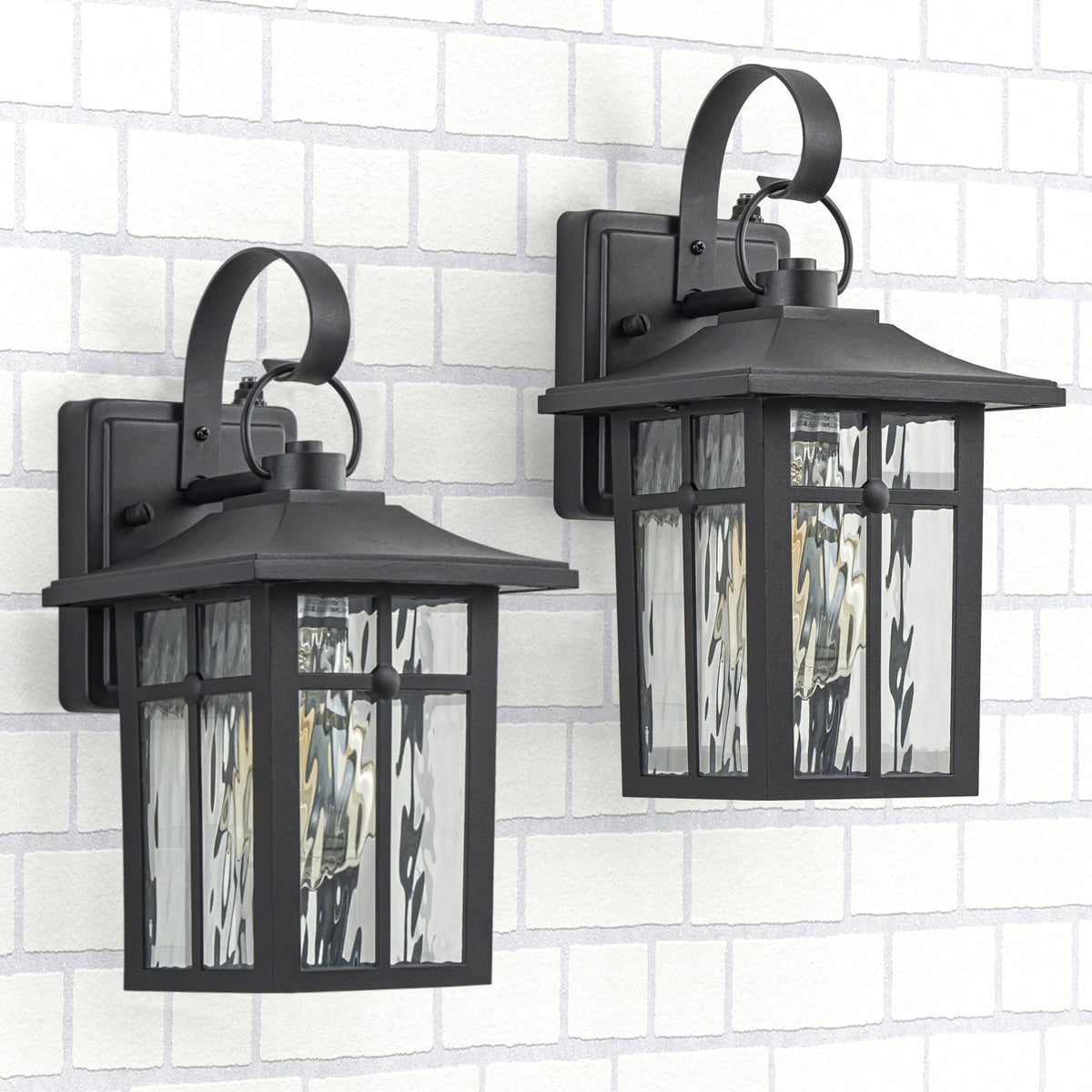 Lawyettle 2 Pack Dusk To Dawn Outdoor Wall Lights, Exterior Light Fixtures Wall Mount With Ripple Glass, Waterproof Black Porch Lights, Outside Wall Lantern For Entryway, Garage, Patio