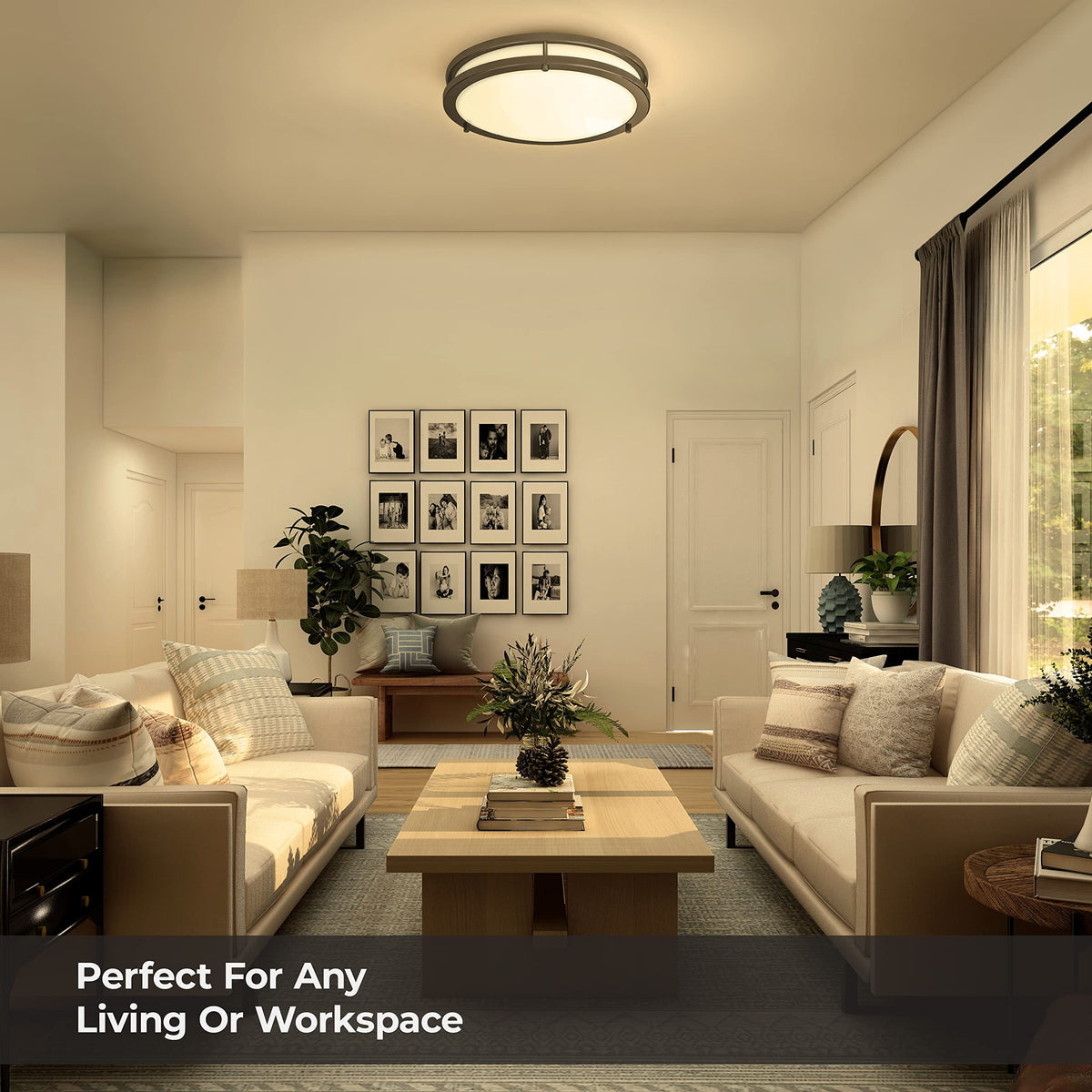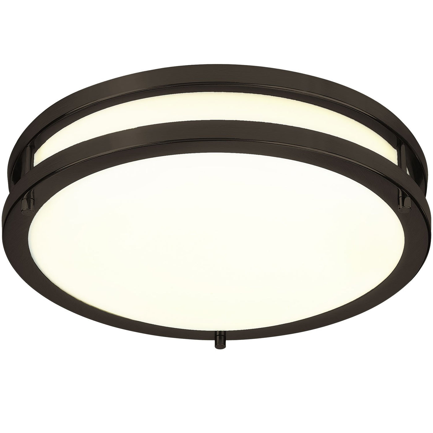 FEATURES & SPECIFICATIONS INTENDED USE Add sleek modernity to your home with this LED flushmount ceiling light. Featuring a lovely Oil Rubbed Bronze for an acrylic shade for warm illumination. Ideal for use in foyers, corridors, hallways, bedrooms, offices, utility work areas, stairways and many other light commercial or residential settings. Fixture can be left on for continuous 24/7 hour operation. CONSTRUCTION Contemporary style fixture. Twin steel rings surround a dropped durable, milk- white acrylic diffuser. Complemented with matching trim in either a brushed nickel or antique bronze finish. Diffuser provides widespread illumination. Available in two sizes: 12 or 16 diameters. Fixture can be flush or semi-flush mounted using the pendant mounting kit (ordered separately). Removable twin steel rings provide easy access for cleaning. OPTICS 12 units produce 1,050 lumens and 16 units produce 1,610 lumens, both at 50,000 hours life. ELECTRICAL Long-life LEDs provide extended service life and are rated to deliver L70 performance at 50,000 hours. Fixture operates at 120 volts, 60Hz. 12 unit standard input = 15 watts, 70 lumens per watt. 16 unit standard input = 23 watts, 70 lumens per watt. Works with most standard incandescent INSTALLATION All mounting hardware included. LISTINGS ETL Listed to US safety standards and suitable for damp locations. ENERGY STAR Certified. WARRANTY 3-year limited warranty.
