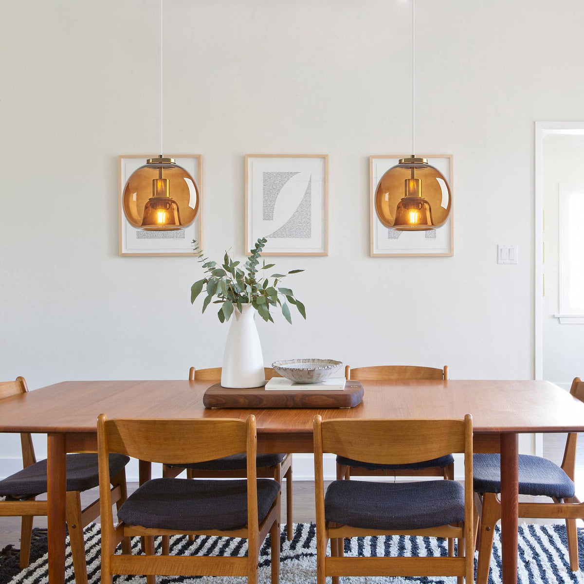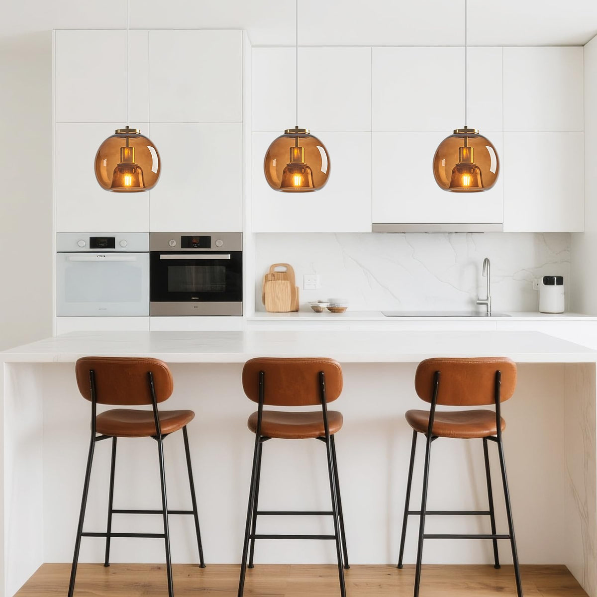 Lbsqj Brown Glass Pendant Lights Kitchen Island Gold Hanging Light Fixture Glass Globe Pendant Light Modern Pendant Lighting For Kitchen Island Bedroom Dining Room (7.87 2 Pack)