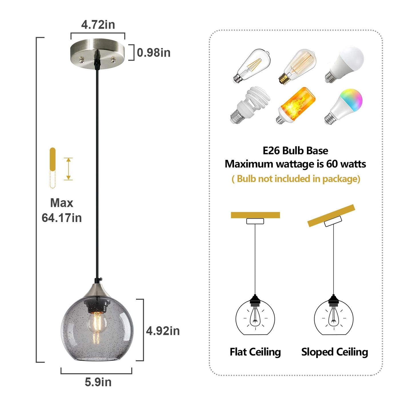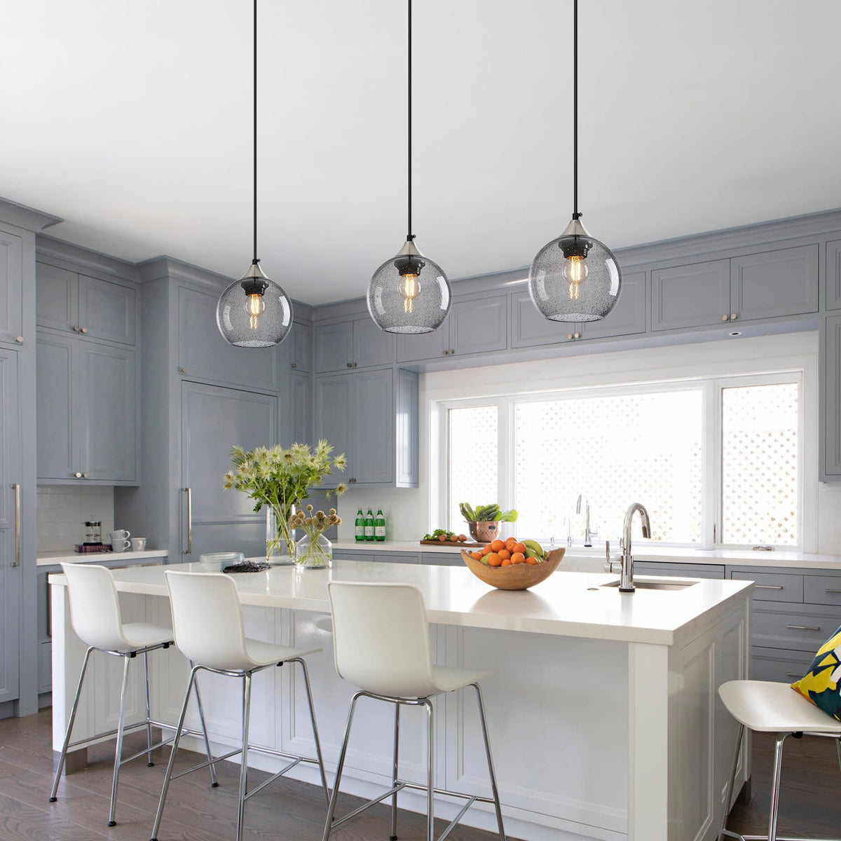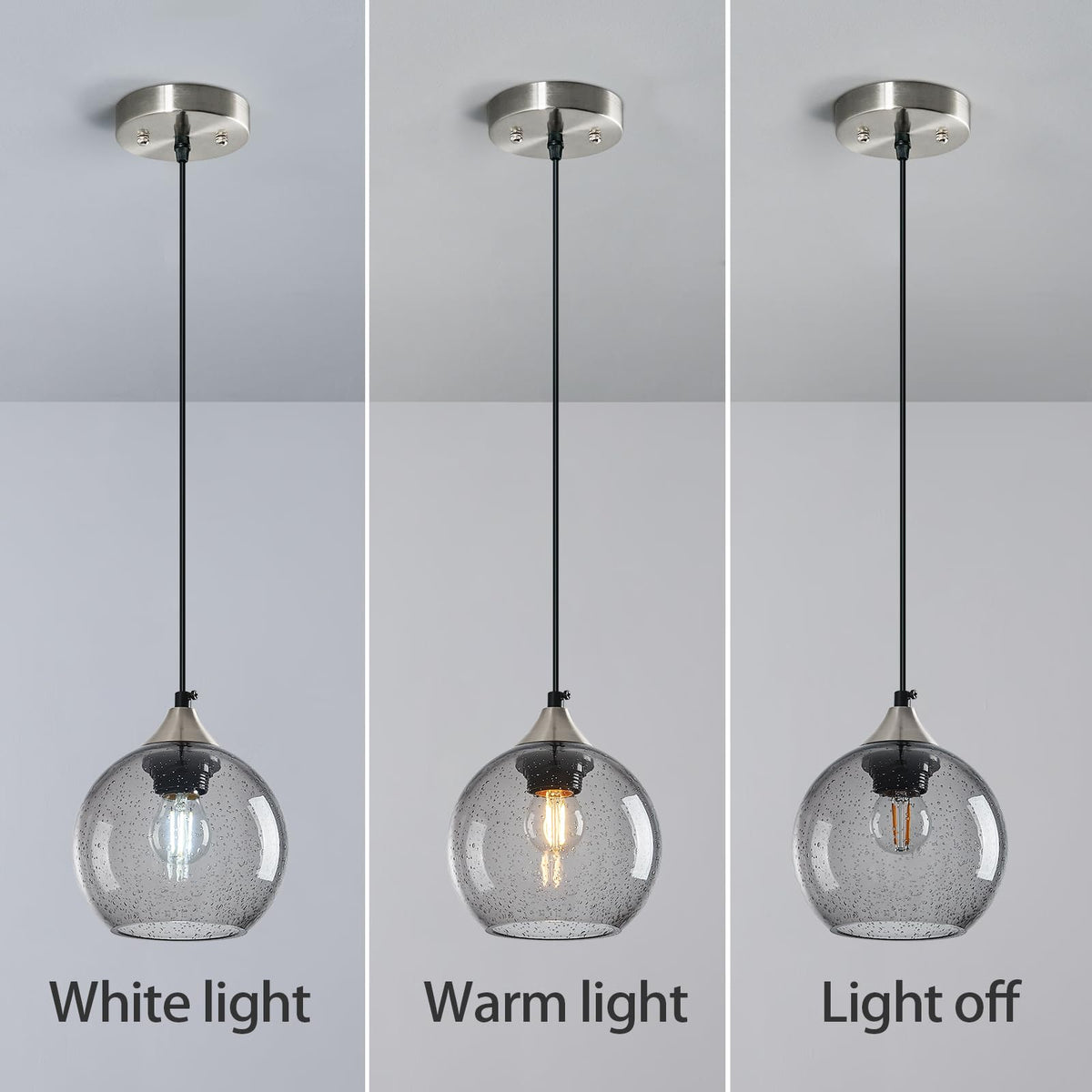 Lbsqj Light Grey Glass Pendant Lights Kitchen Island Globe Pendant Light Fixtures Modern Pendant Lighting For Bedroom Living Dining Room Light Fixture (5.9 In 1 Pack)