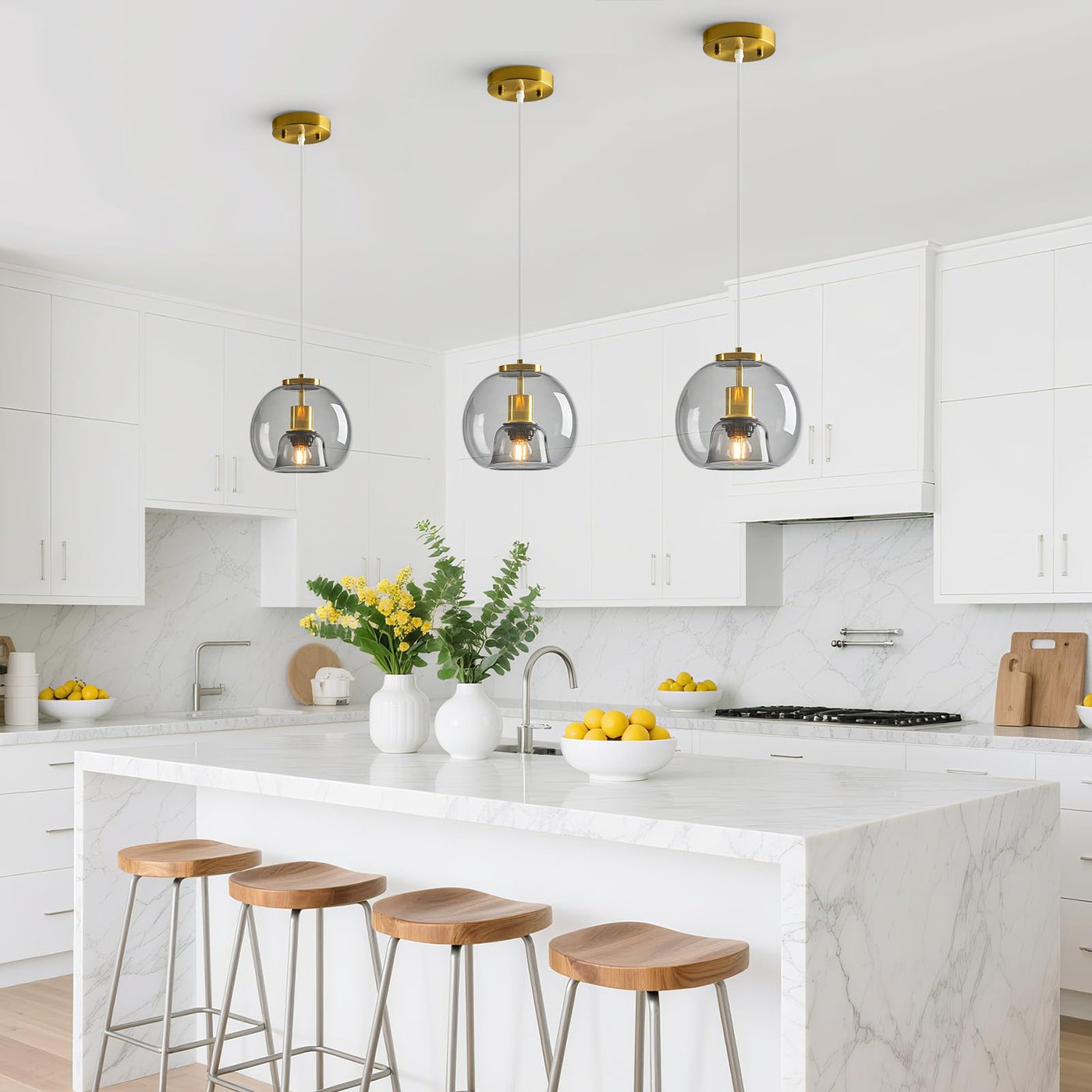 Lbsqj Light Grey Glass Pendant Lights Kitchen Island Gold Hanging Light Fixture Glass Globe Pendant Light Modern Pendant Lighting For Kitchen Island Bedroom Dining Room (7.87 1 Pack)
