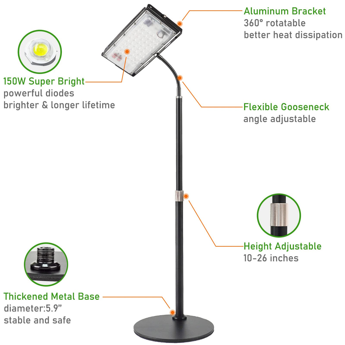 Q: How easy is it to install the LBW Grow Light?A: Installing the LBW Grow Light is quick and easy. In just one minute, you can install the telescopic rod, screw in the gooseneck and plant light, and adjust the height and angle to your preference.