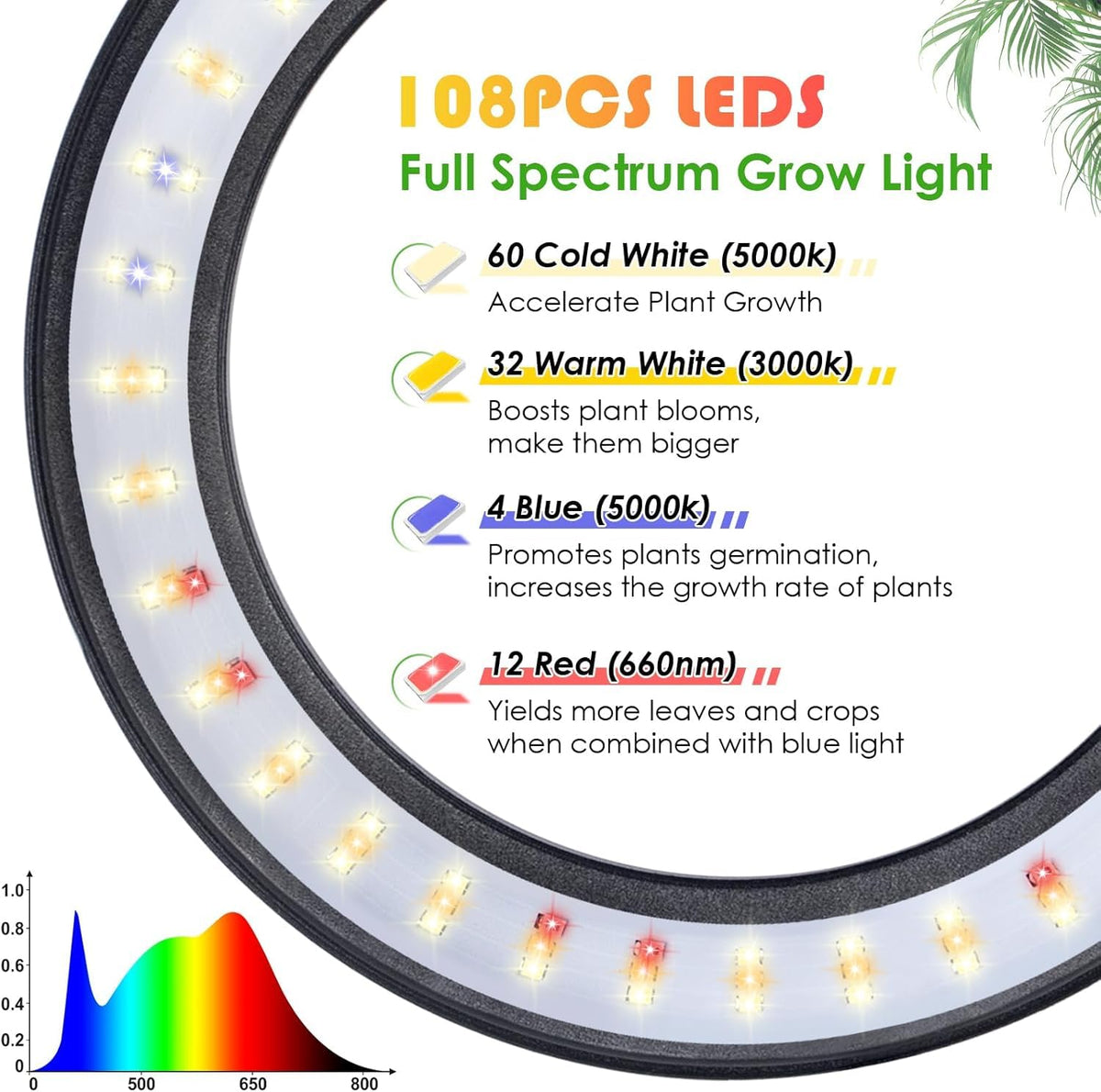 Lbw Grow Lights For Indoor Plants With Stand Full Spectrum, Floor Plant Lights For Indoor Growing, 108 Leds Standing Plant Lamp, 4/8/12H Auto Timer, 6 Brightness, Height Adjustable,7.8 Diameter