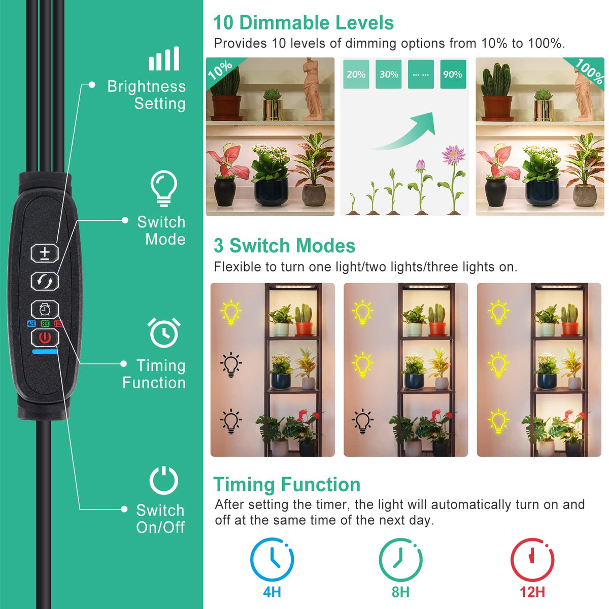Q: Can I adjust the brightness of the LBW Grow Light?A: Yes, the LBW Grow Light features 10 dimmable levels ranging from 10% to 100%. This lets you customize the light intensity based on the specific needs of your plants, promoting optimal growth while saving electricity.