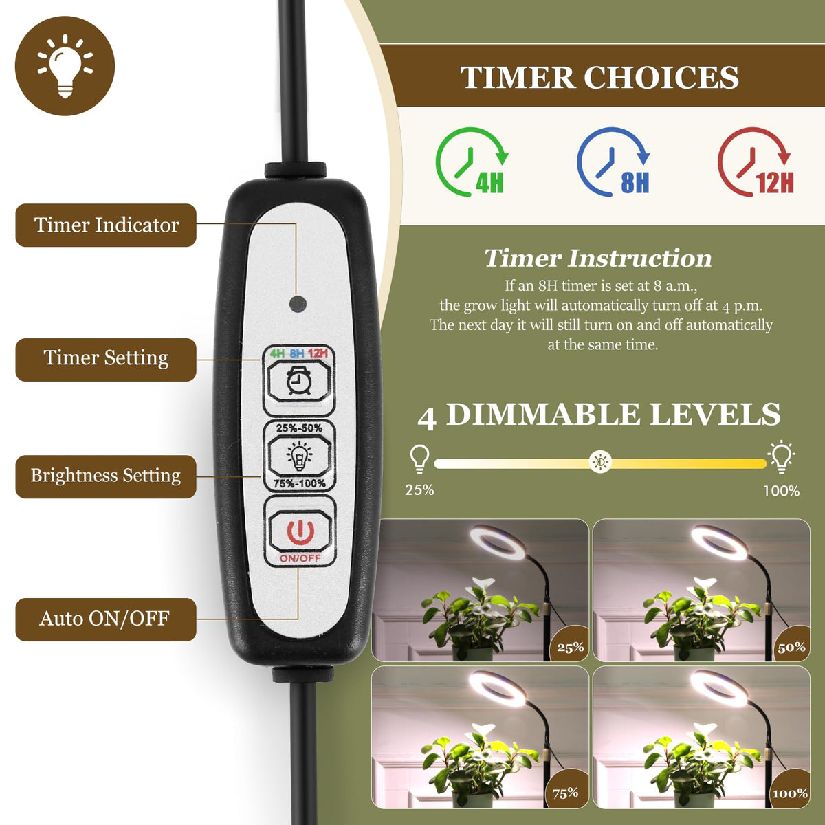 Lbw Plant Grow Light, 72 Leds Desk Halo Grow Light For Indoor Growing, Full Spectrum Grow Lamp With 4/8/12H Auto Timer, 4-Level Brightness, 16"-26" Height Adjustable, Ideal For Indoor Growth, Black
