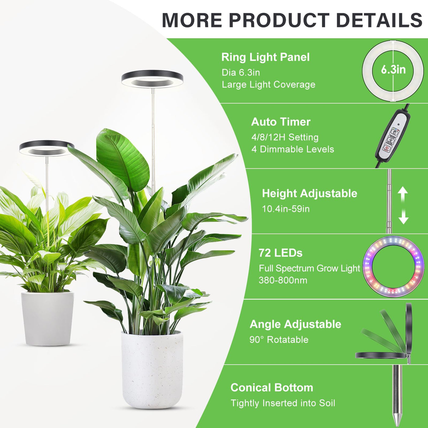 Designed specifically for indoor gardening enthusiasts! Featuring a unique halo lamp head with 72 premium LED beads, this plant light provides optimal illumination for your precious plants. Its innovative design allows for easy insertion into the soil, making it a seamless addition to your indoor garden setup.