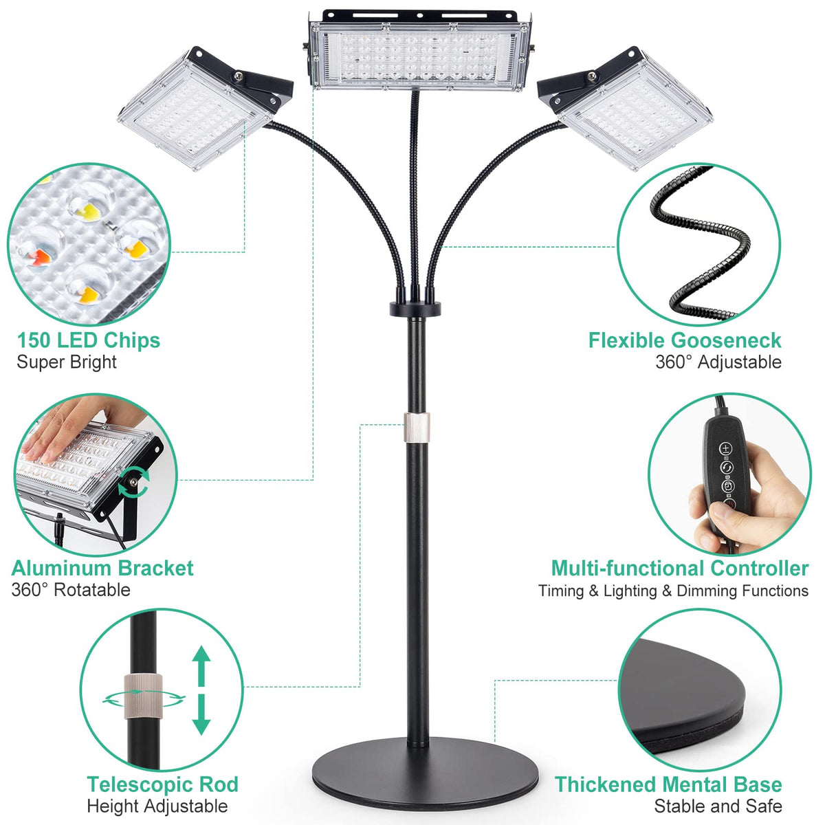 Lbw Plant Grow Light, Full Spectrum Tri-Head Desk Plant Light For Indoor Plants, Growing Lamp With 3H/6H/12H Timer, 6-Level Brightness, 3 Lighting Modes, Height Adjustable, Ideal For Indoor Growth