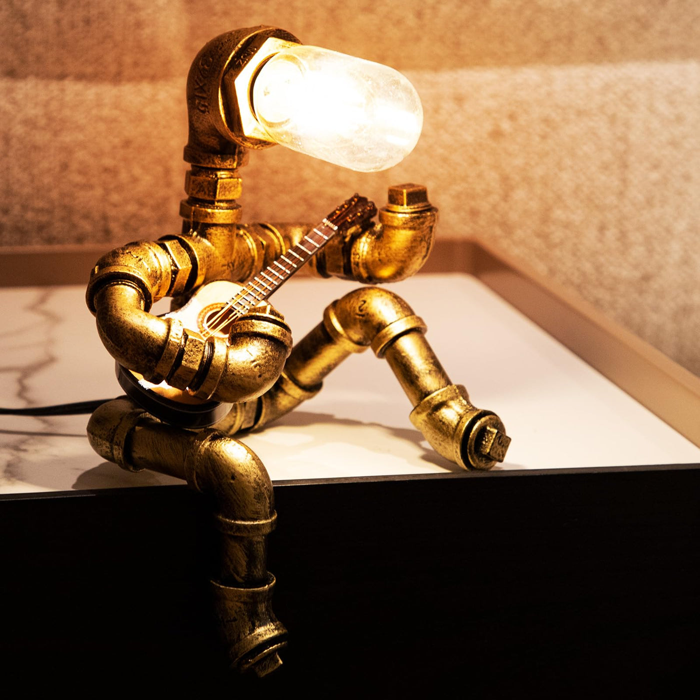 Lcyy.Tg Music Guitar Table Lamp - Art Decor Steampunk Table Lamp,Retro Guitars Steampunk Lamp, Industrial Metal Tube Robot Lamp Cool Guitar Stuff Present For Men Music Lovers (Not Included Bulb)