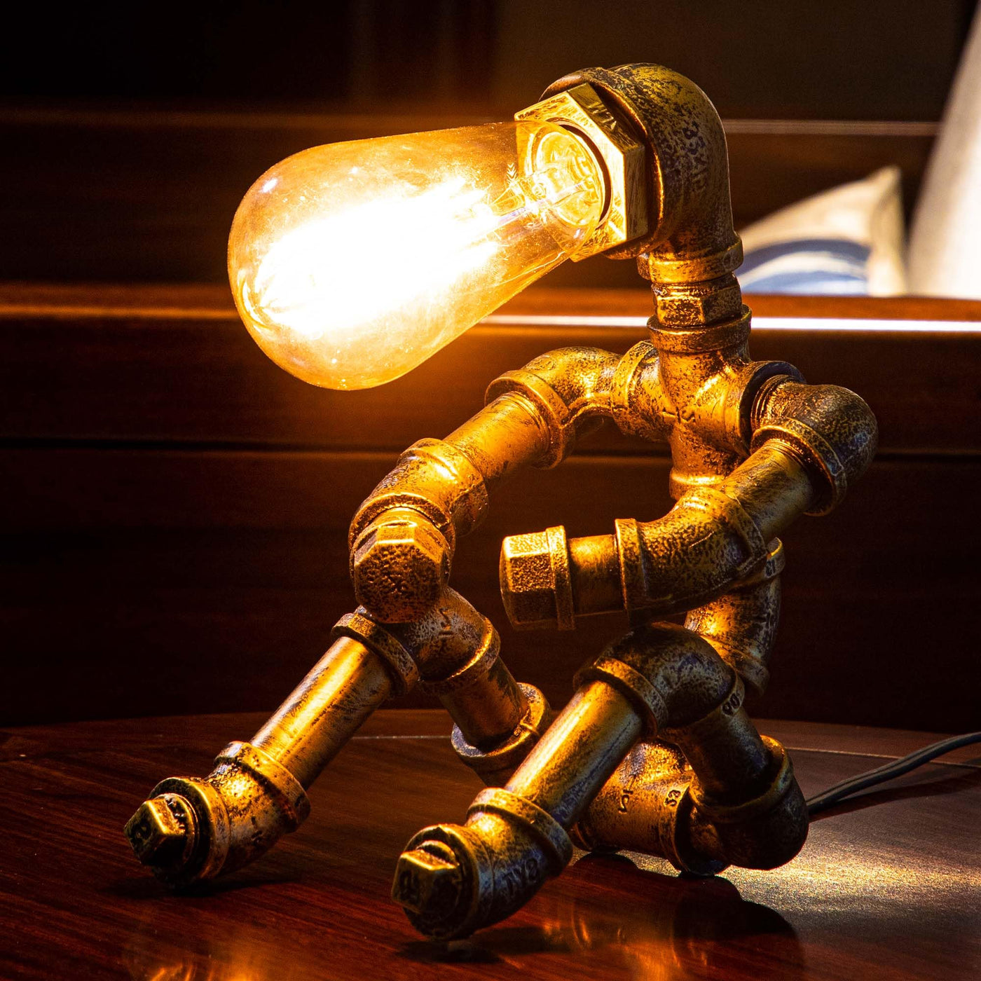 Lcyy.Tg Steampunk Table Lamp, Vintage Industrial Metal Robot Table Lamp, Water Pipe Table Lamp, Robot Style Desktop Light For Be