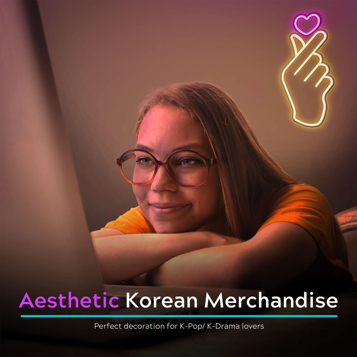 LEBURRY Finger Heart Neon Sign - LED Light for K-pop Fans, 16.3x7.5 inches, South Korean Novelty Decor