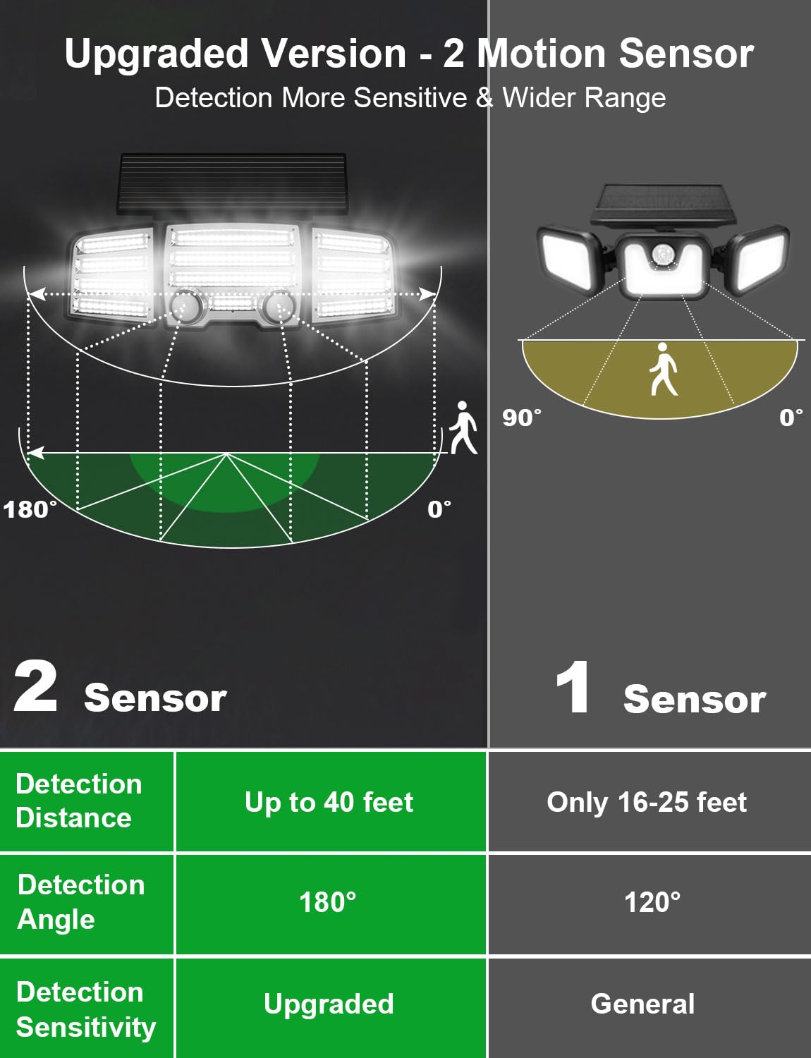 - **Enhanced Motion Detection**: Equipped with dual PIR motion sensors, these lights offer a 180-degree sensing angle and can detect motion up to 40 feet away, increasing safety and visibility in your outdoor areas.