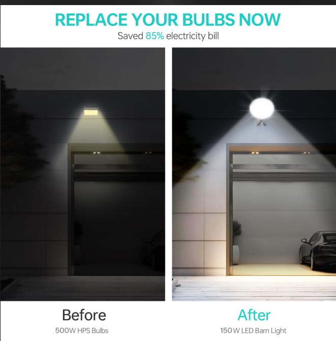 Led Barn Light, 150W Dusk To Dawn Led Outdoor Light With 20000Lm 6500K Daylight, Ip66 Waterproof Security Exterior Street Light With 150°Adjustable Angle, Ultra-Bright & Easy To Install