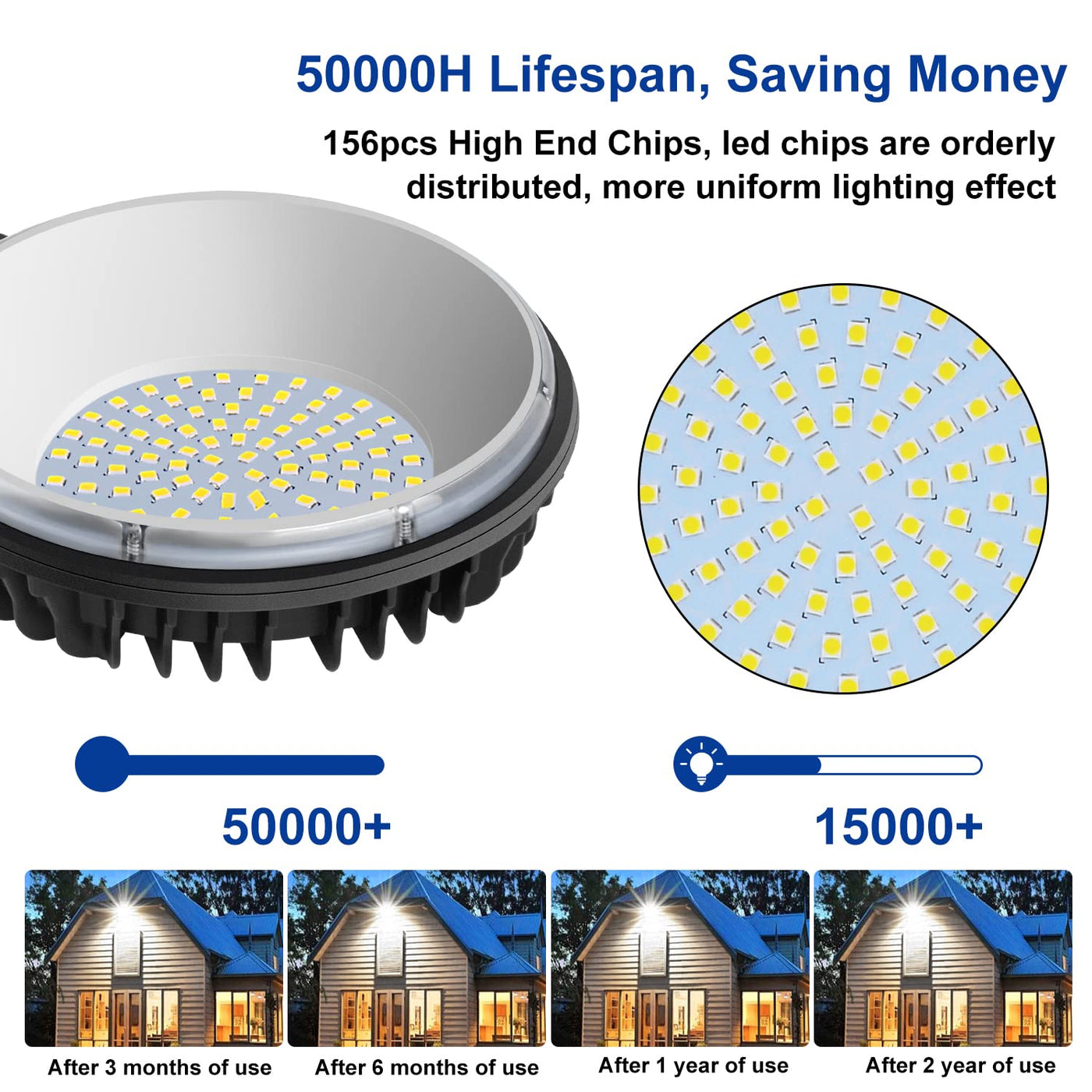 Q: What is the lifespan of the LED Barn Light?A: This LED barn light has a long lifespan of approximately 50,000 hours, providing reliable lighting for years without the need for frequent replacements.