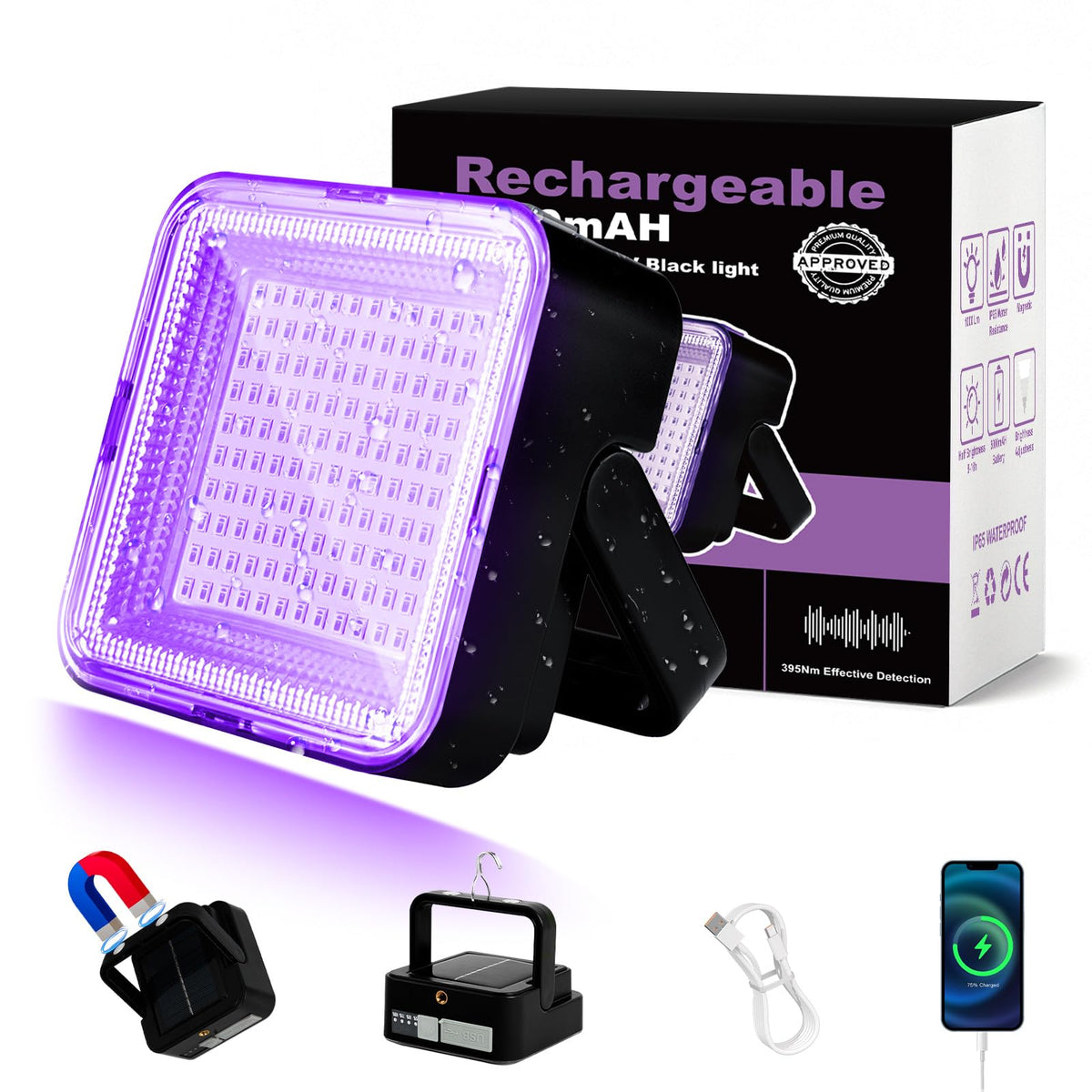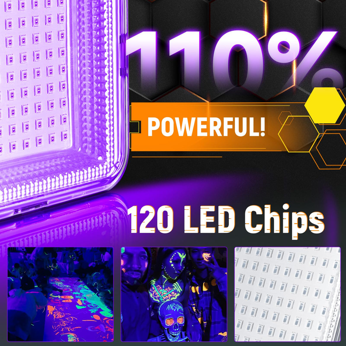 LED Black Ligh,Rechargeable 5000mAh 120 UV led, IP65 Waterproof & Magnetic, Long Runtime Ultraviolet Light for Neon Glow Party,
