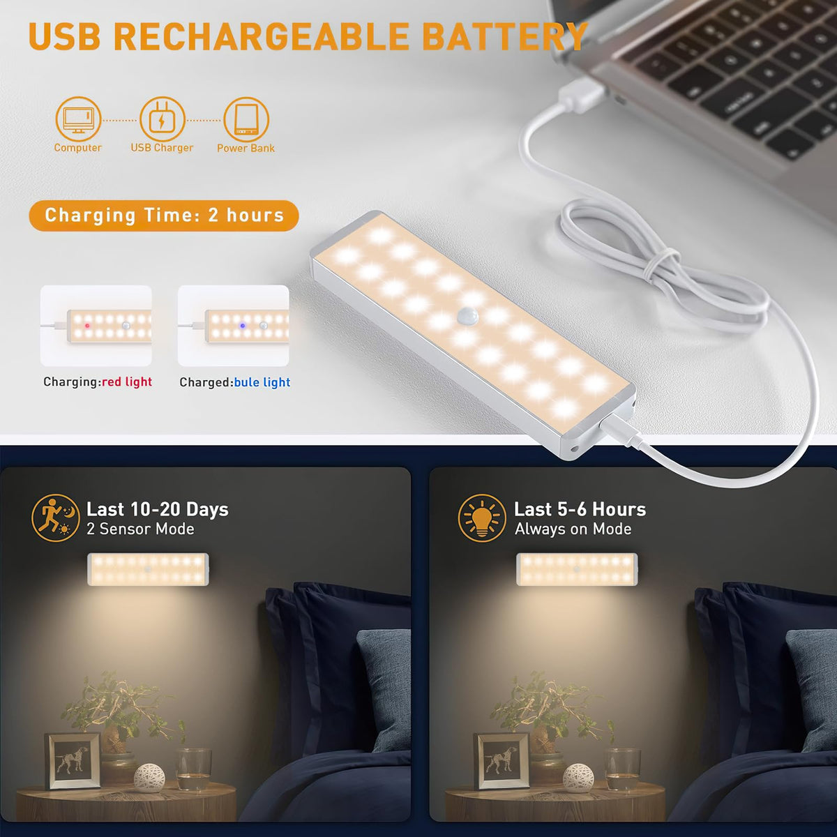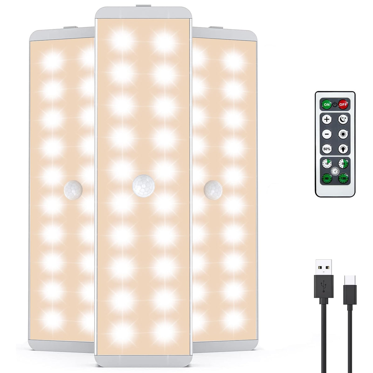 Led Closet Light, 20Leds Rechargeable Motion Sensor Under Cabinet Lighting With Remote Control, Wireless Stick-Anywhere Night Sa