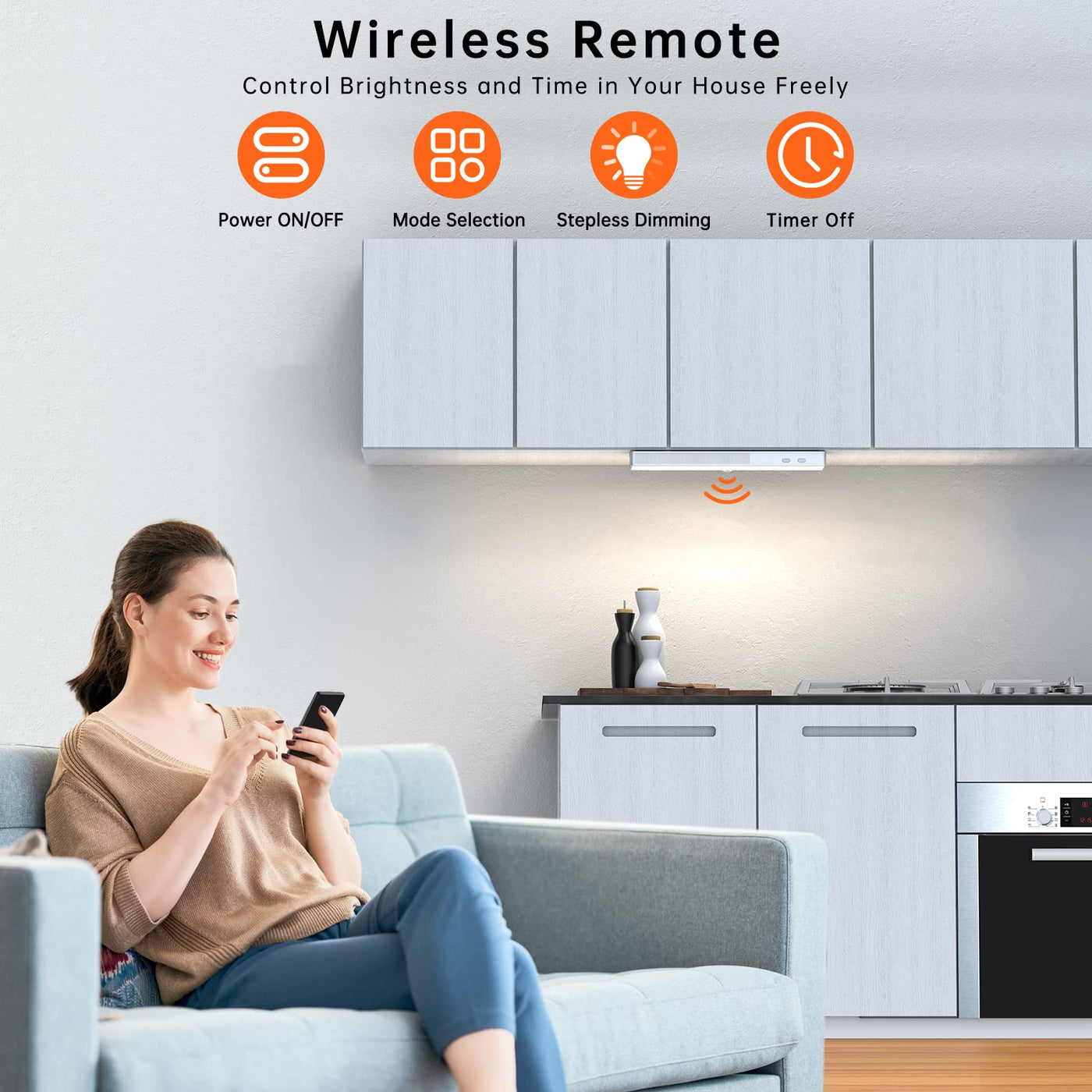 Upgraded Remote Closet Lights:Lightbiz led cabinet lights equip smart remote. You can set the switch, switch the mode, adjust the brightness of the light, and timer off. You can also press the switch to turn on/off the light directly.