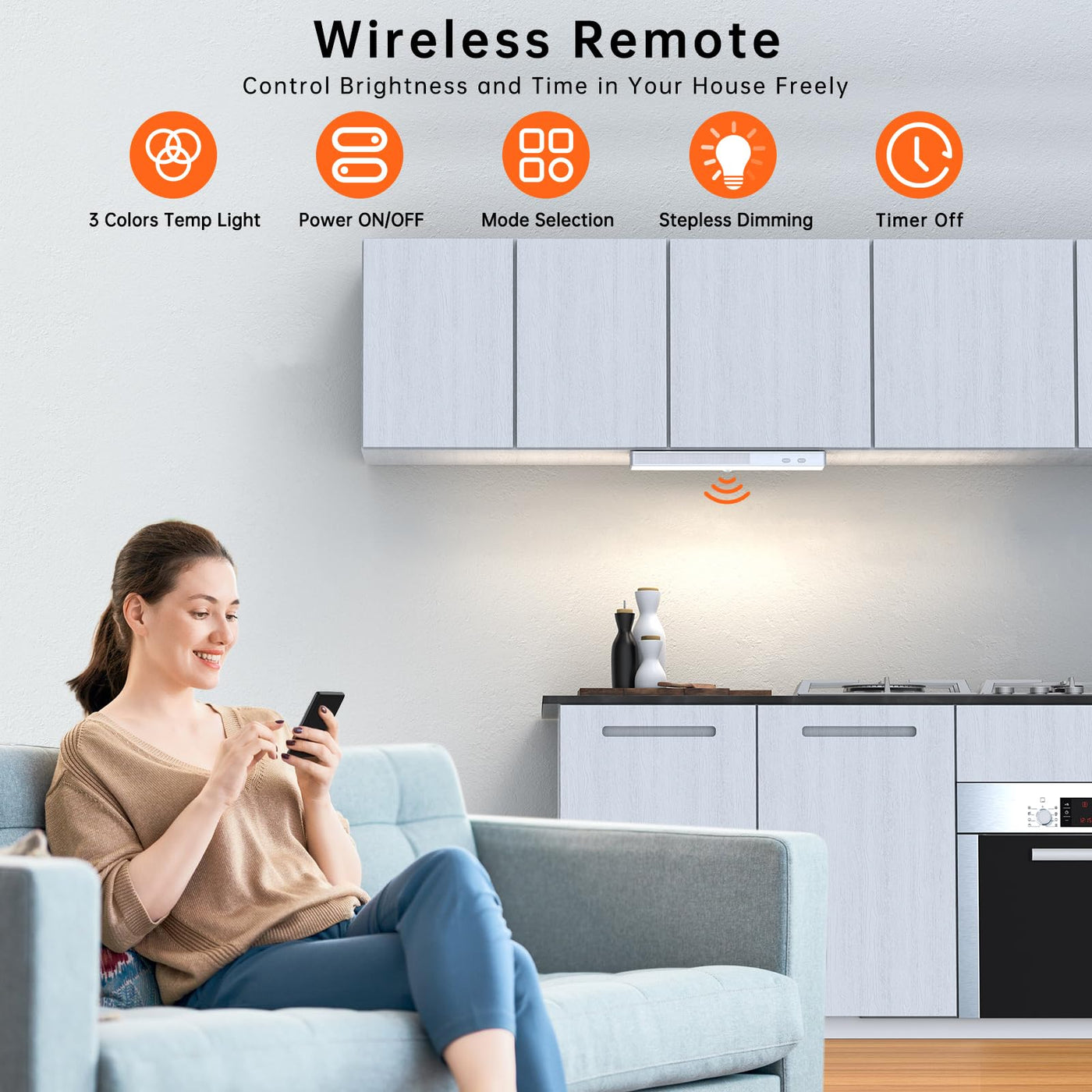 Upgraded Remote Closet Lights:Lightbiz led cabinet lights equip smart remote. You can set the switch, switch the mode, adjust the brightness of the light, and timer off. You can also press the switch to turn on/off the light directly.