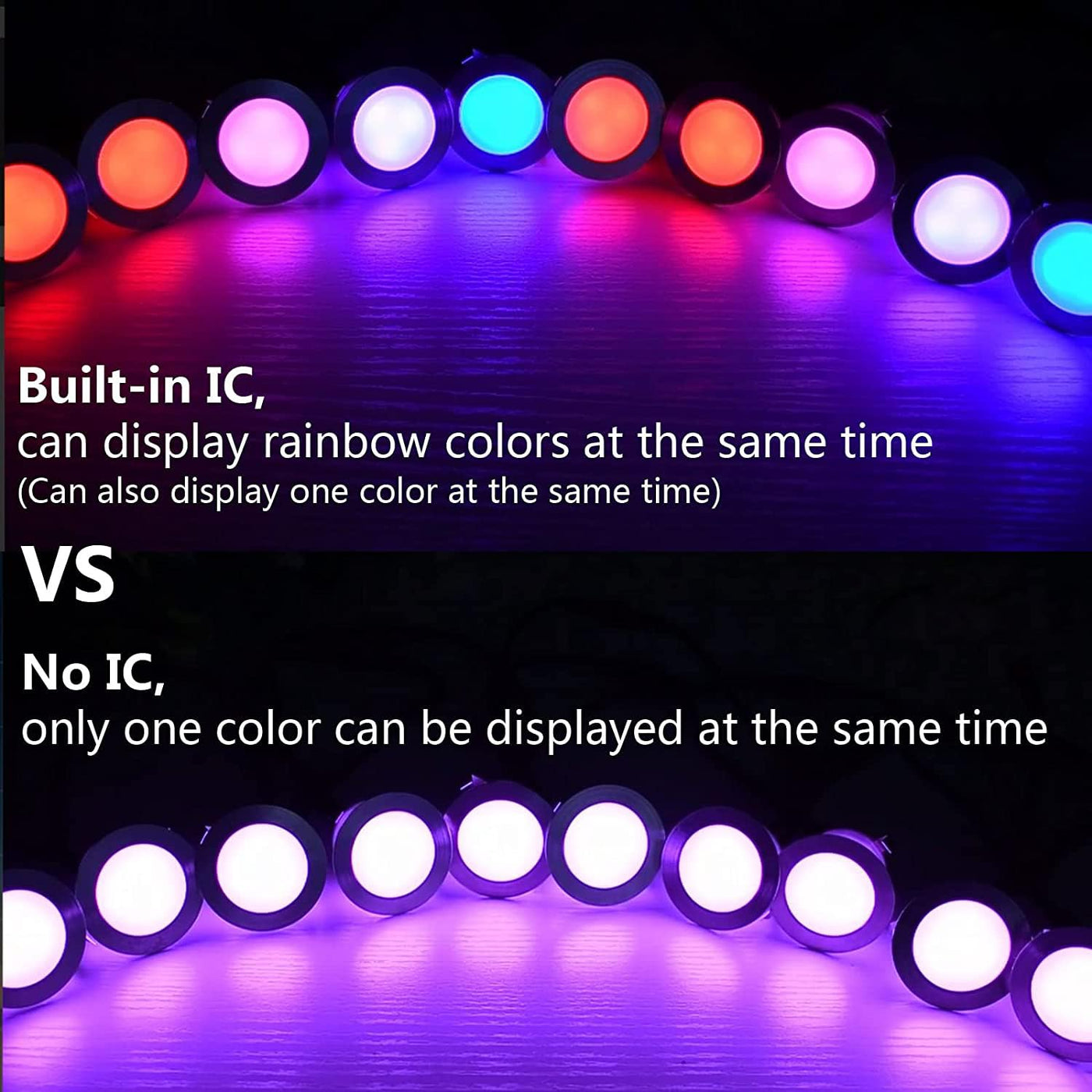Specification:Model: D45BLighting Color: RGB + Warm WhiteDimension: F45*H26mmVoltage: DC 12VRated Power Per Light: 0.6WLED Chips: 3 x SMD5050Lumens Output: 12 LMBeam angle: 120Waterproof Rating: IP67Item Color: BlackMaterials: High Grade Stainless Steel & PCWire Length: Double 0.5MApplication: Indoor & OutdoorATTENTIONS:1.Please pay attention to the difference between positive and negative wire, there is an arrow signal on the wire.2.The length between each light is 1m(3.28ft), if you want to extend it, please purchase our 5pin extension cables separately.3.Each light can be connected to other ones. Any number of them can be hooked up to one another, and even morethan one set can be purchased and added to the same chain of lights. Total lights power capacity no more the 80% of the the power supply.Package Included:20xLED Deck Lights1 x Power Supply(30W)1 x WiFi Wireless Controller1 x 24 Key Remote Control1 x User Manual