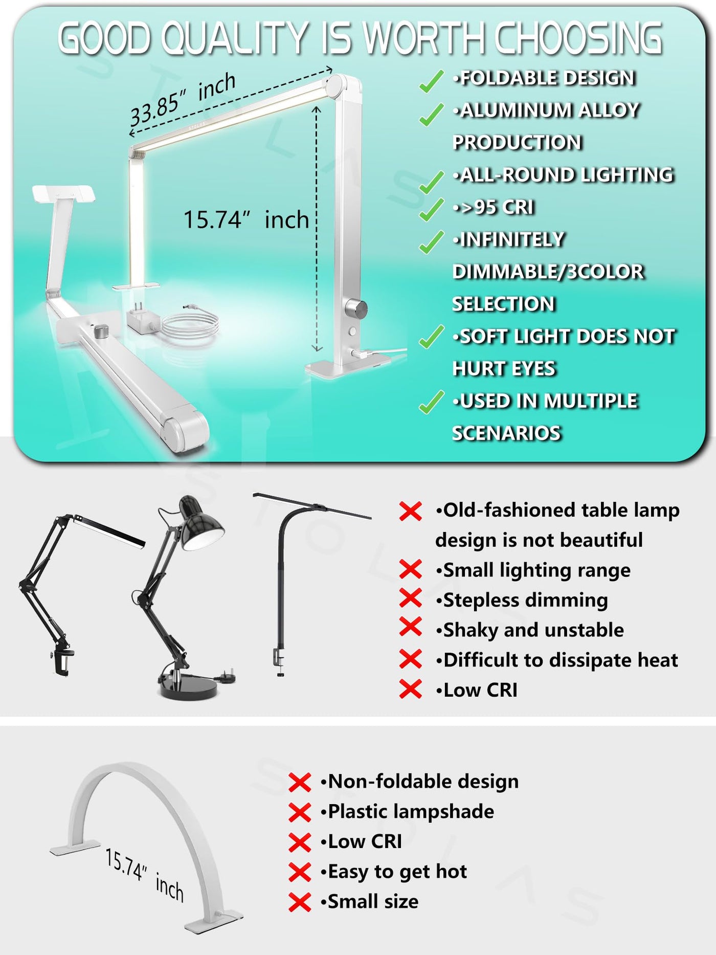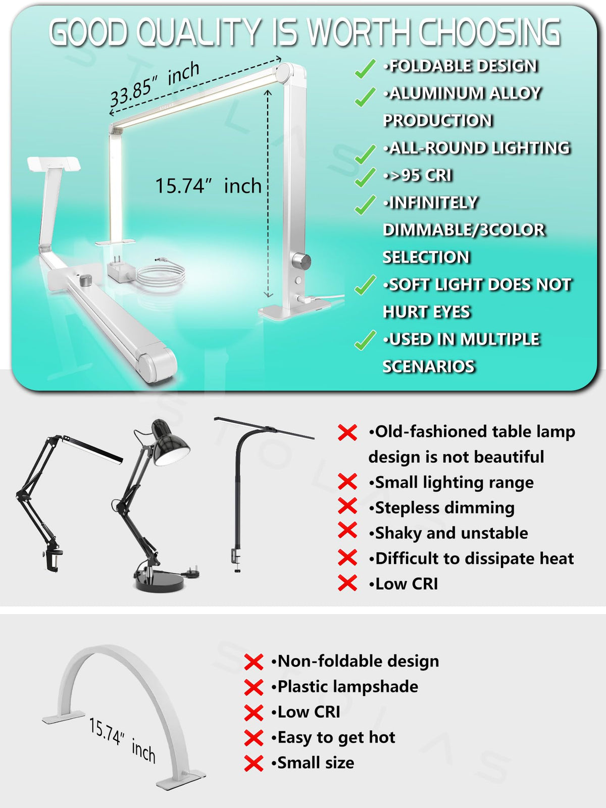 Q: How does the Color Rendering Index (CRI) affect my lighting experience?A: With a CRI of over 95, this desk lamp ensures that colors appear natural and vibrant, closely resembling their appearance under sunlight. This is particularly beneficial for activities like painting or crafting, where accurate color representation is crucial.