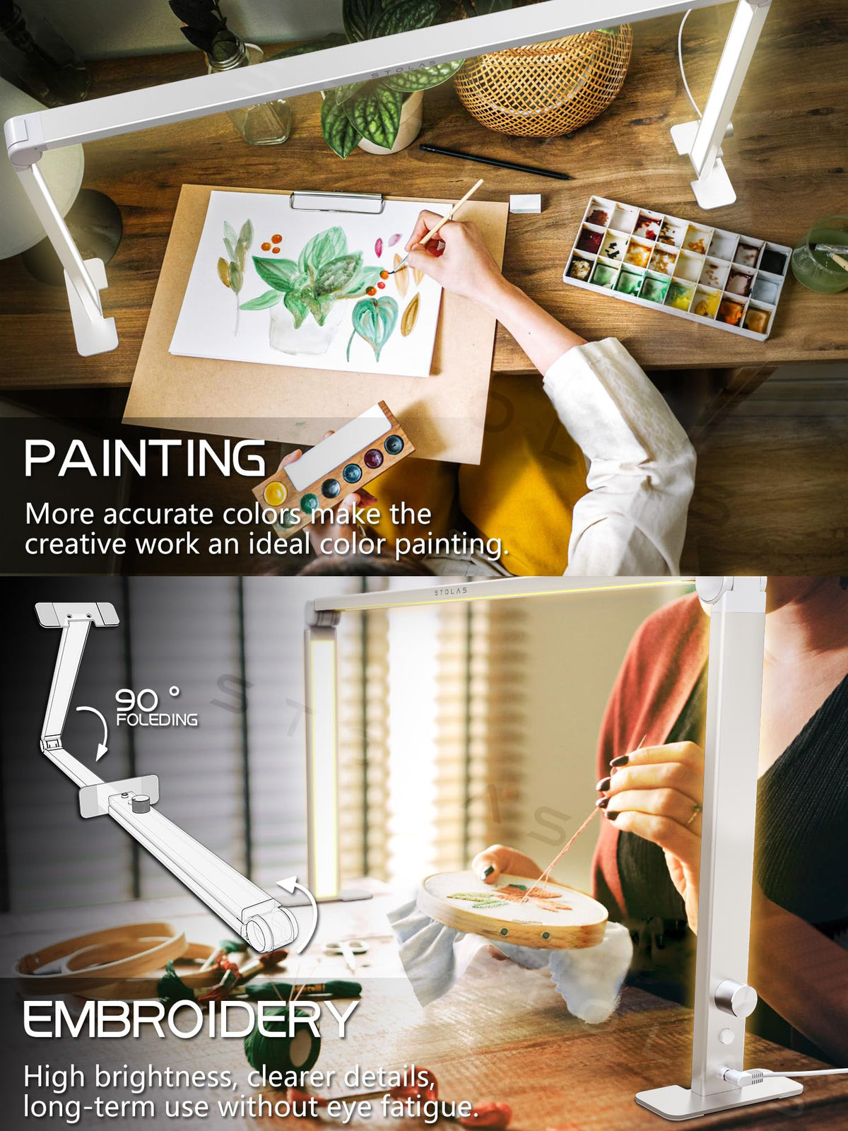 Q: Is the LED Desk Lamp safe for long-term use?A: Yes, the LED Desk Lamp is designed with eye care in mind. It features no flicker, no glare, and no blue light, making it safe for prolonged use while reducing eye strain during tasks like reading or studying.