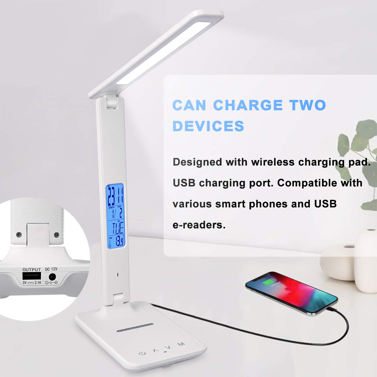 Led Desk Lamp, Desk Lamp With Wireless Charger, Suitable For Home, Office Dimmable Desk Lamp, With Usb Charging Port, Built-In Clock, Calendar, Thermometer And Automatic Timing Reading Desk Lamp.