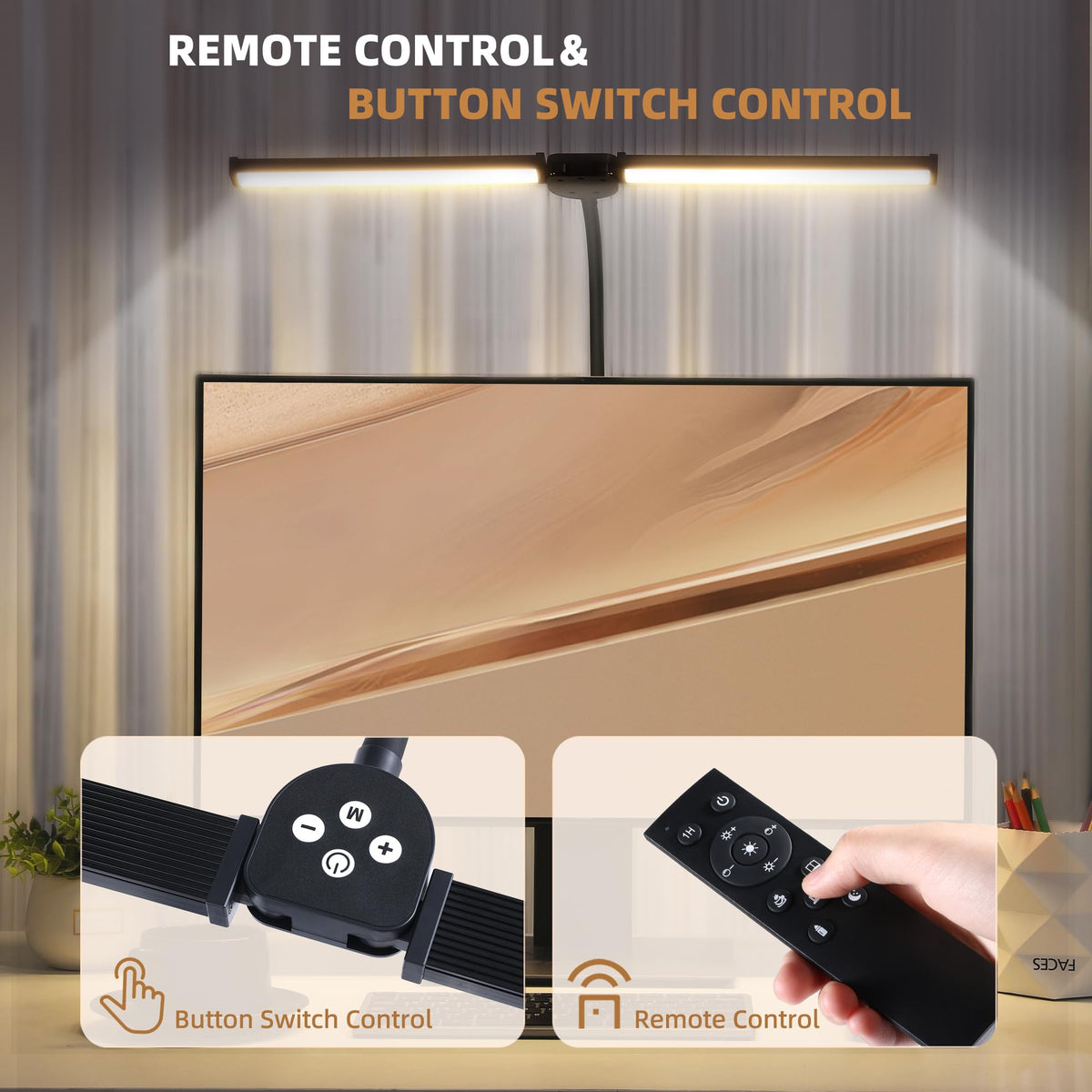 Q: How does the remote control function work for this desk lamp?A: The desk lamp includes a remote control that operates effectively within a range of 32.8 ft (10 m). It allows you to adjust the lighting modes and set a timer for 1 hour, providing convenience and flexibility in your workspace.