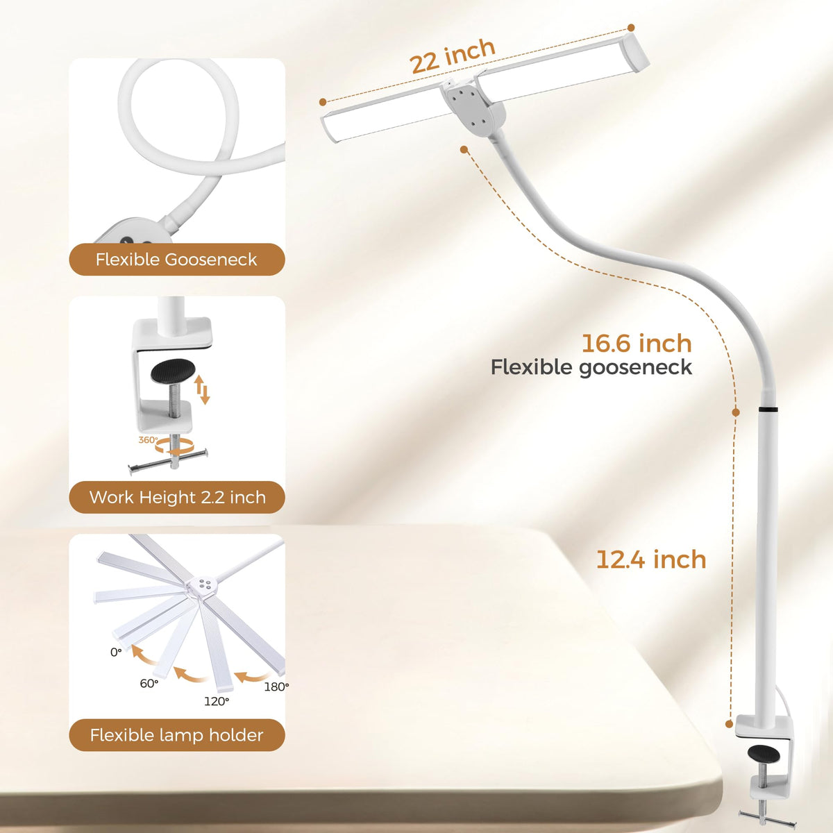 Led Desk Lamp For Home Office, Eye-Care Architect Light With Clamp, Smart Double Head Computer Monitor Table Clip Lamp, Adjustab