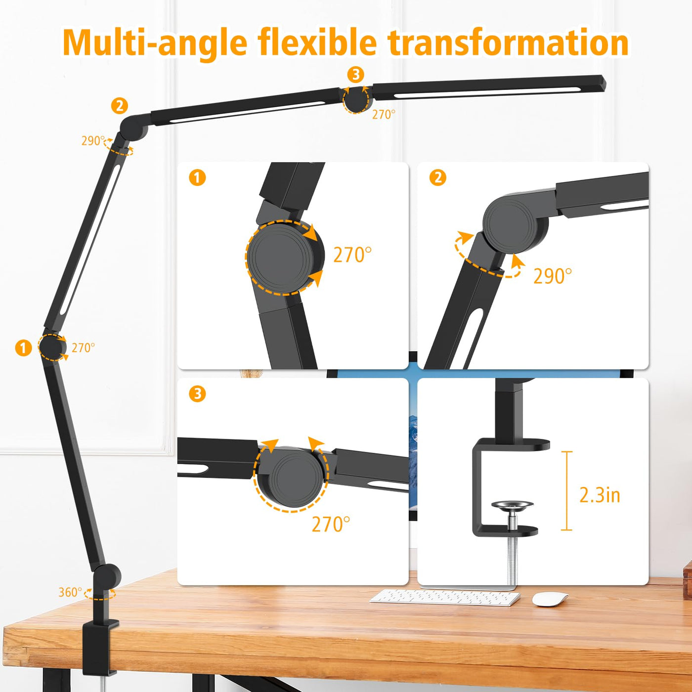 Led Desk Lamp With Clamp,Adjustable Swing Arm Desk Lamps For Home Office,Dimmable Tempering Eye Care Desk Light,Bright Modern Le