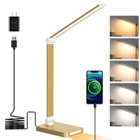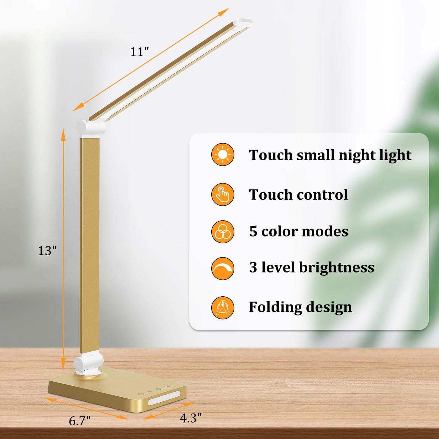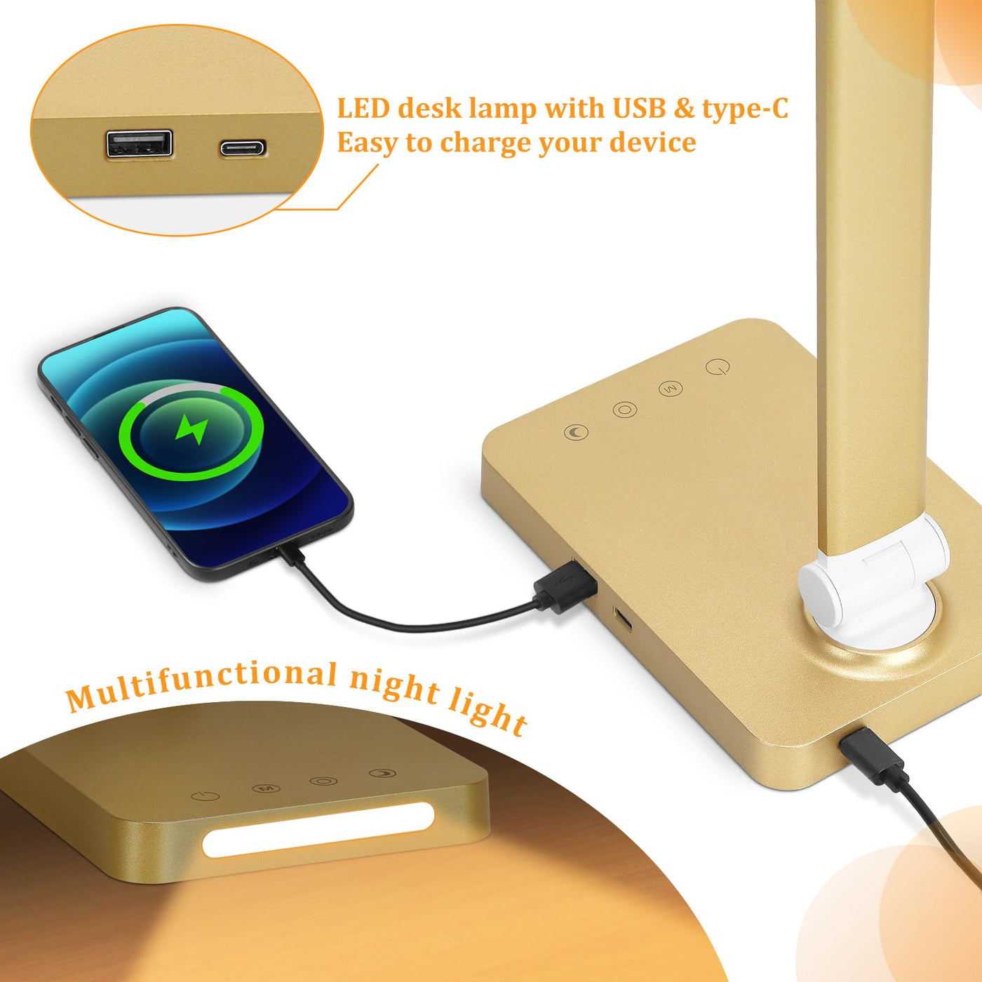 Led Desk Lamp With Usb Ports,Touch Desk Lamps For Home Office With 5 Color Modes,3 Brightness Desk Light With Small Night Light,