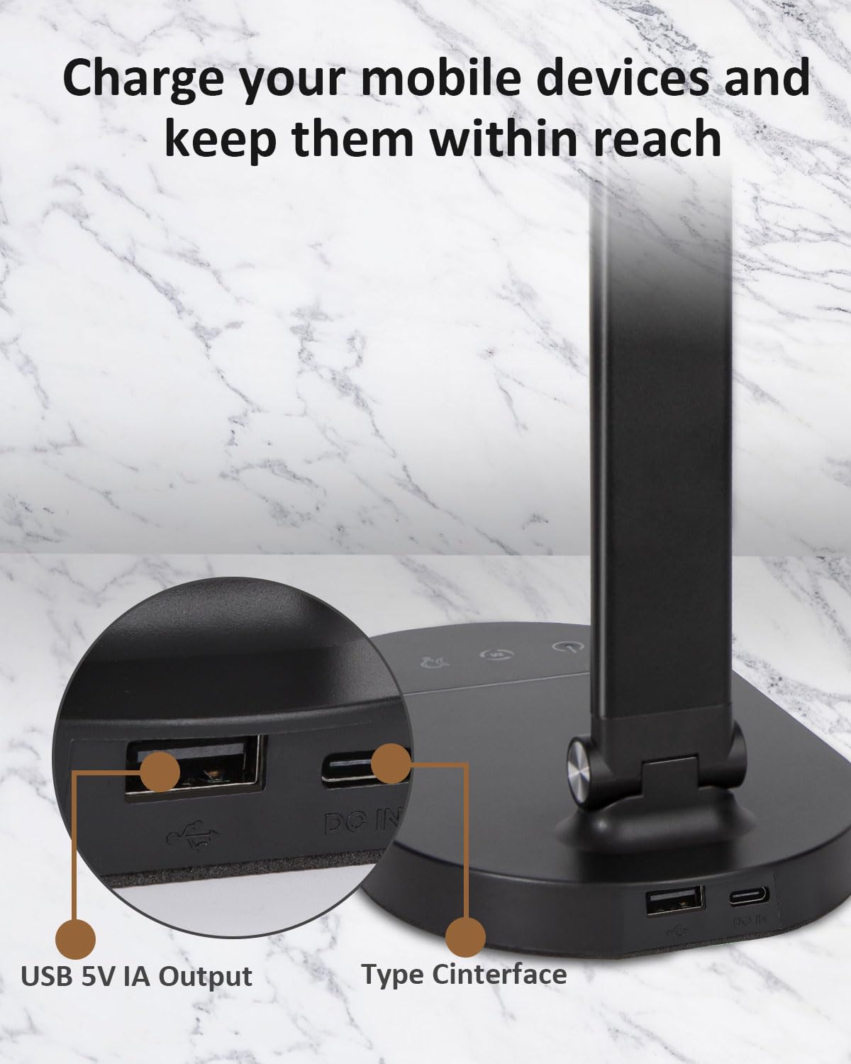 Q: Is there a USB charging port on this desk lamp?A: Yes, this desk lamp is equipped with a USB charging port, allowing you to charge your devices conveniently while keeping your workspace organized.