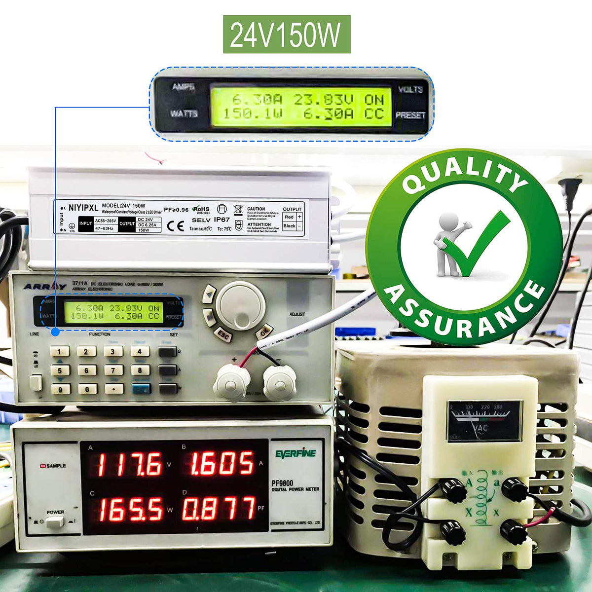 Led Driver 150 Watts 24V Dc Low Voltage Transformer, Waterproof Ip67 Led Power Supply, Adapter With 3-Prong Plug 3.3 Feet Cable