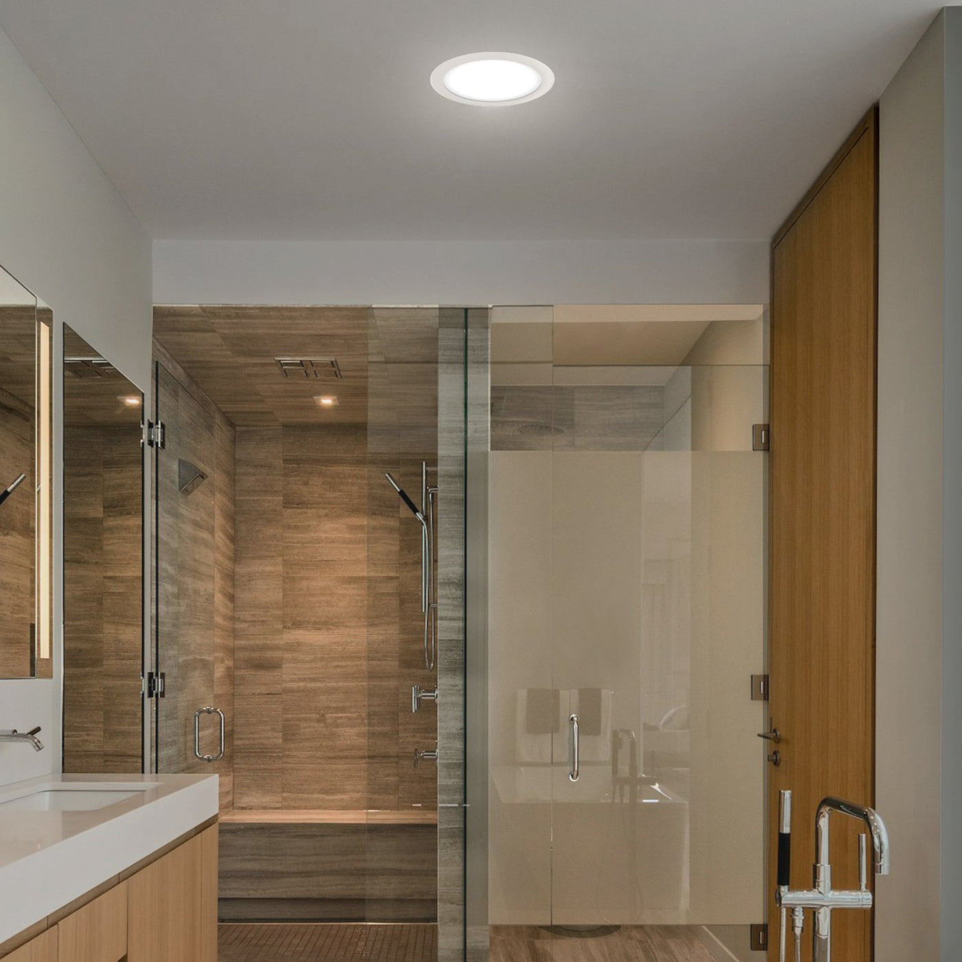 Q: Can this recessed light be used in damp locations?A: Yes, the LED Fantasy Ultra Thin Downlight is vapor proof and safe for use in damp locations such as bathrooms, hospitals, and other areas where moisture is present.