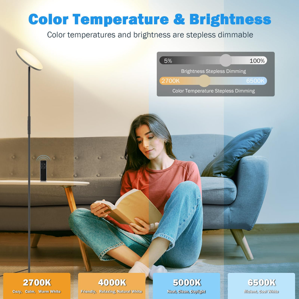 Led Floor Lamp, 3000Lm 30W Super Bright Standing Lamp, 300W Equivalent Modern Torchiere Sky Lamp, 2700K-6500K Stepless Dimming W
