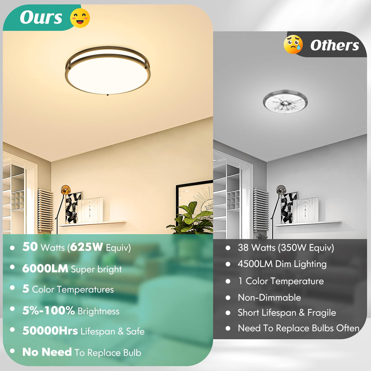 Here Comes Brightever Flush Mount Ceiling Light!What Do We Have?1. Versatile Lighting: Choose From 5 Different Color Temperatures To Suit Any Mood Or Setting.2. Powerful Illumination: With 50W And 6000Lm, These Lights Provide Bright And Efficient Lighting For Any Space.3. Dimmable Function: Adjust The Brightness To Create The Perfect Ambiance For Any Occasion.4. Modern Style: The Sleek And Contemporary Design Adds A Touch Of Modernity To Your Living Space.5. Easy Installation: Quick And Hassle-Free Installation Ensures You Can Enjoy The Benefits Of These Lights In No Time.6. Wide Application: Ideal For Various Spaces Such As Living Rooms, Bedrooms, Kitchens, And More.Experience The Perfect Blend Of Functionality And Style With Our 16-Inch Led Ceiling Lights. Illuminate Your Space With Ease And Create The Desired Atmosphere For Any Occasion. With Their Versatility, These Lights Offer Everything You Need For Exceptional Lighting Experiences. Upgrade Your Lighting Solution Today And Enjoy The Transformative Power Of Our Led Ceiling Lights!
