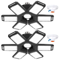 Led Garage Lights 2 Packs, 180W 18000Lm Deformable Triple Glow Garage Lighting with 6 Adjustable Led Panels, E26 Ceiling Light,