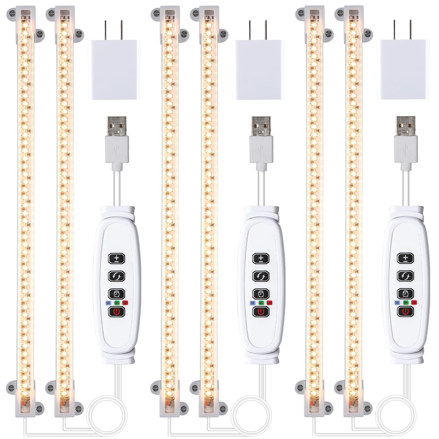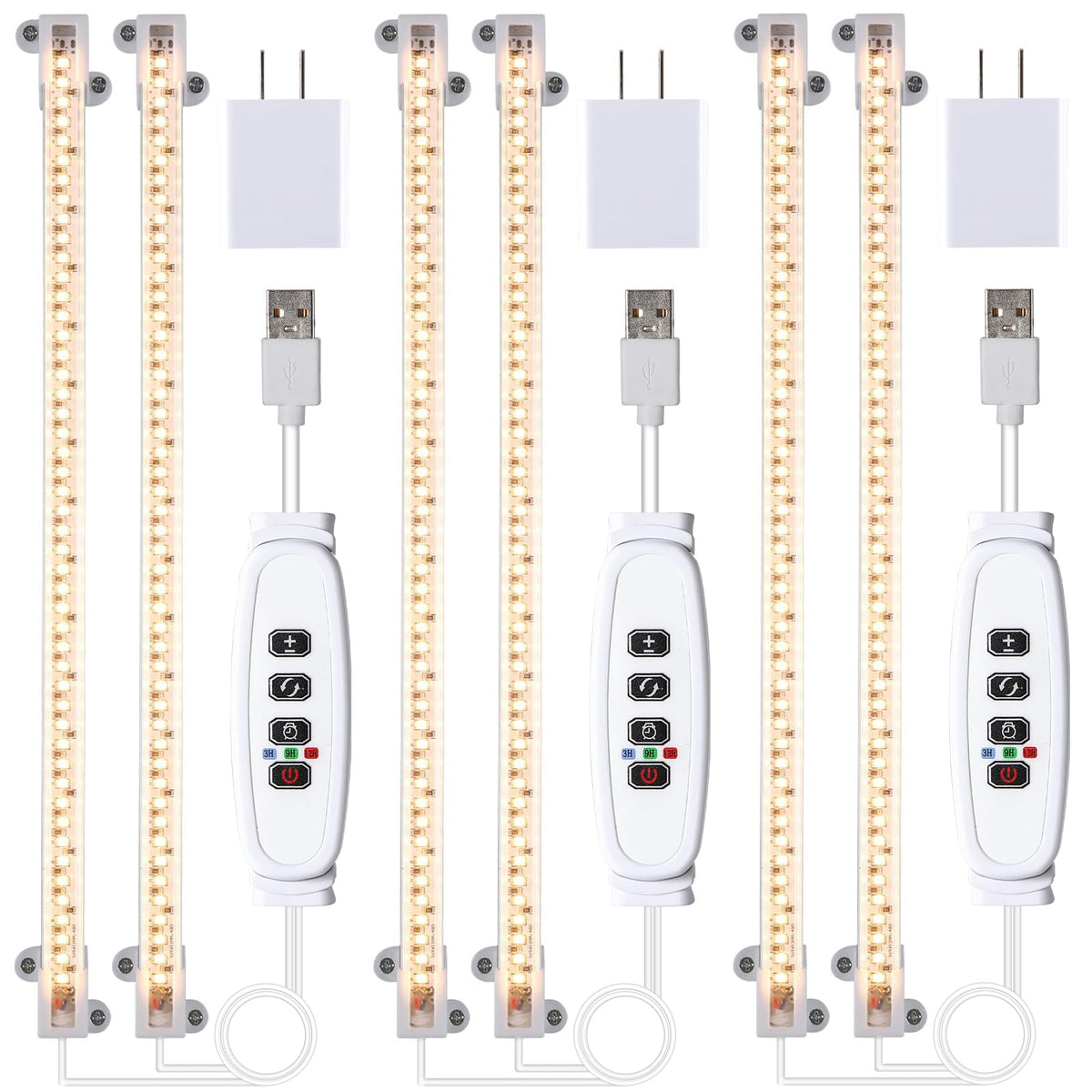 Led Grow Light Strips, Full Spectrum Plant Growing Lights For Indoor Plants 3000K, 144 Leds Plant Lamp With 3/9/12H Timer, 10 Dimmable Levels, 3 Head 13 Inches (2 Strip 3 Pack 3000K)