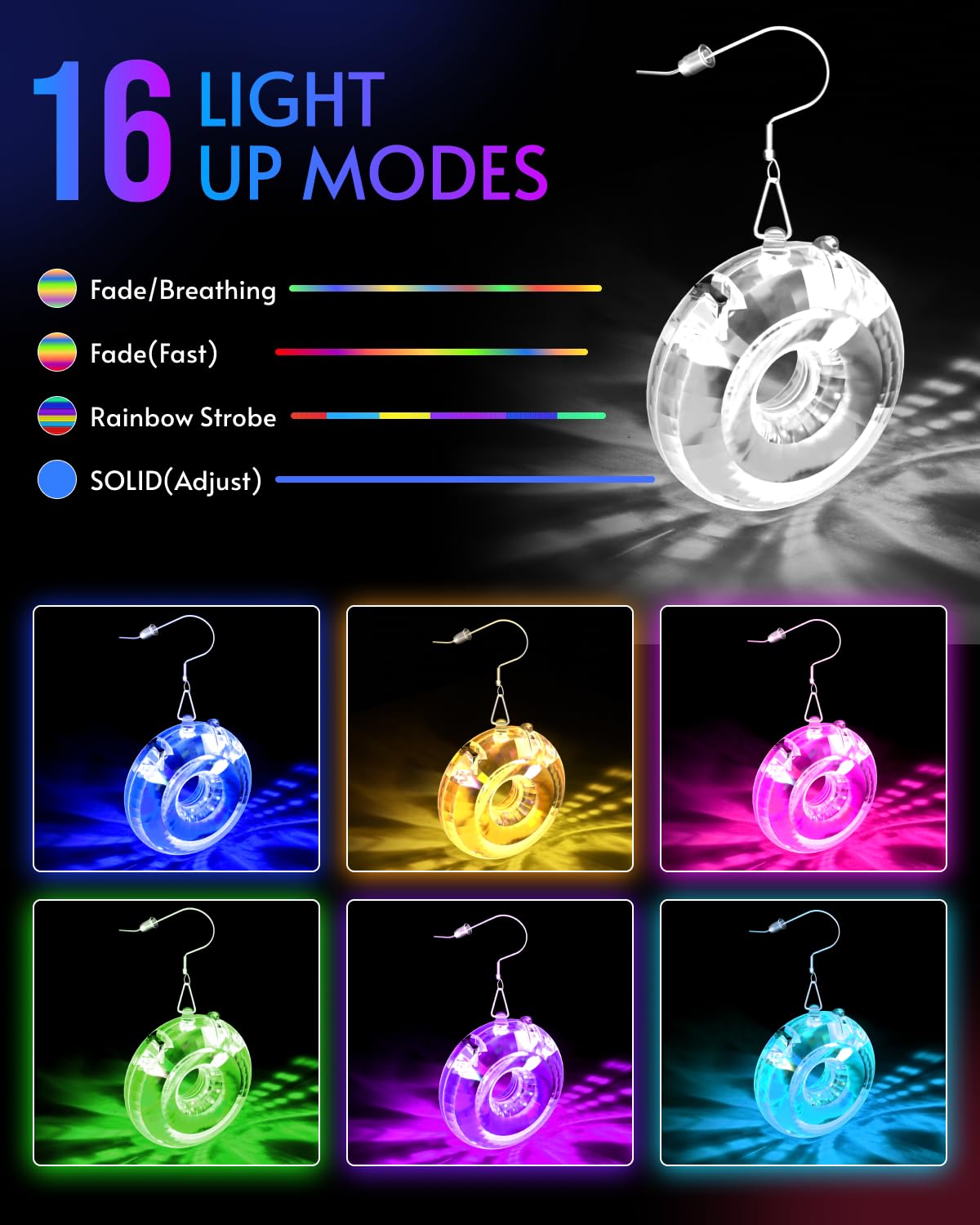 Led Hoop Disco Earrings With 16 Lighting Modes | Usb-Rechargeable Wireless Light Up Earrings For Parties Raves Concerts & Festivals | Sparkling Dance Accessories For Women