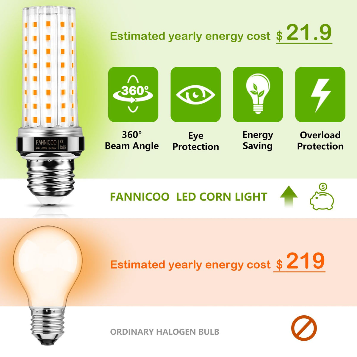 Led Light Bulb 150W Equivalent 2000Lumen 3000K Warm White 20W Led Corn Light Bulb E26/E27 Base Non-Dimmable Ceiling Fan Light Bu