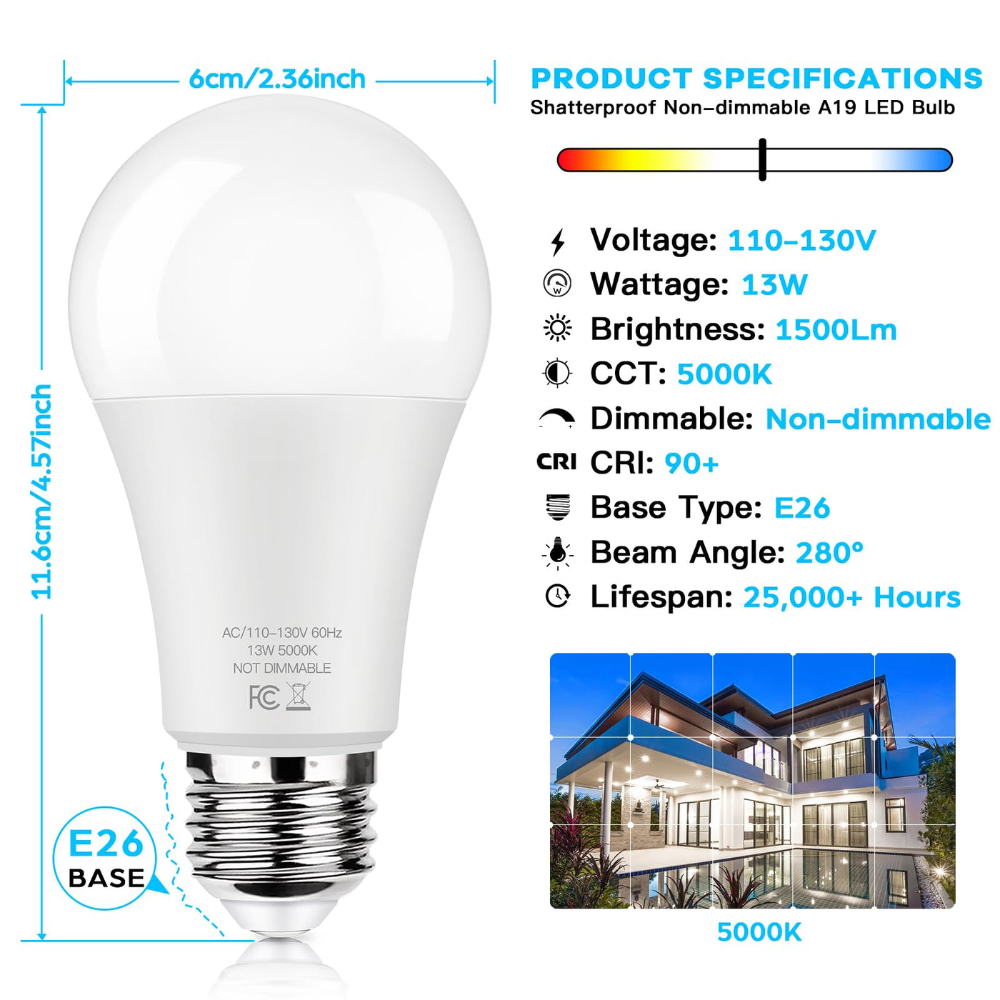 After conducting a lot of research, we found there are many consumer complaints that their dimmable bulbs at the highest brightness are still not bright enough, their lighting fixtures are incompatible with dimmable bulbs and their bulbs always start flickering or buzzing after a few days of using, we decide to produce non-dimmable but super practical bulbs for every consumer. After tireless testing, Brightever 13W A19 LED Bulbs with 1500LM come!