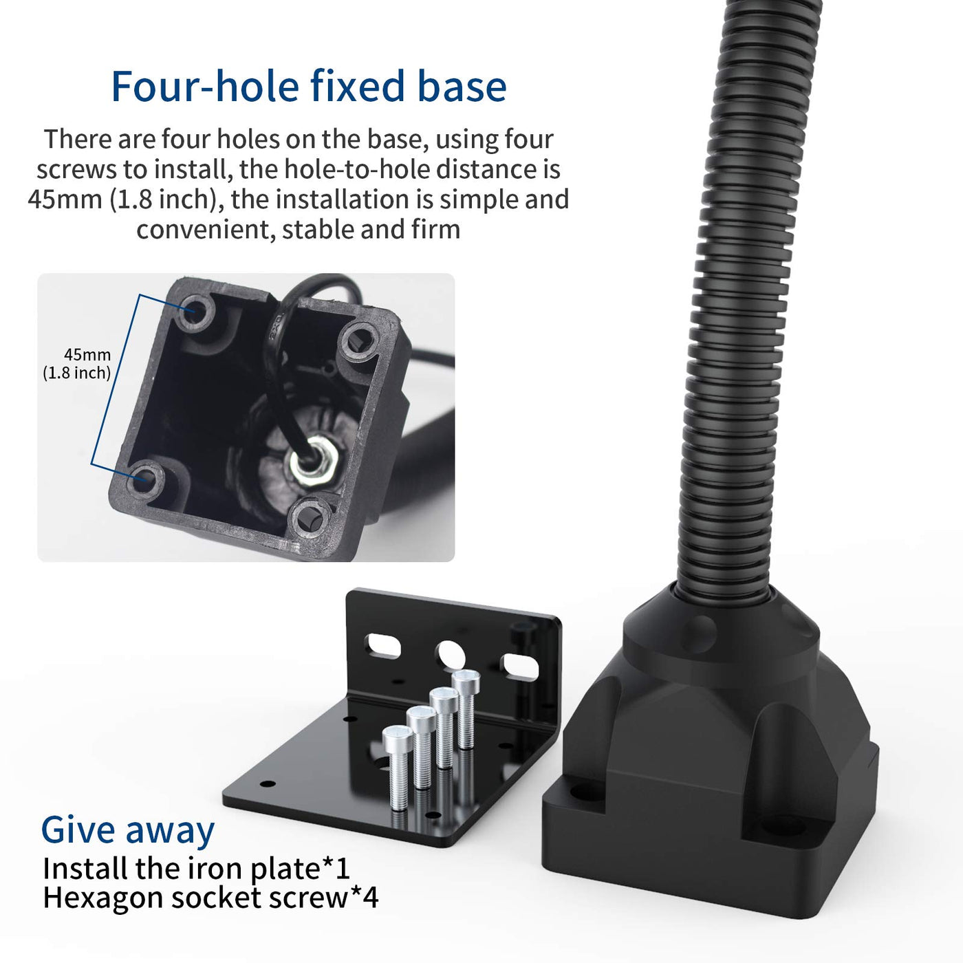 This Is A Versatile 9W Led Work Light The Sealed Head Has An Ip65 Defense Level To Prevent External Water Droplets, But Please Do Not Completely Immerse Or Use It In Water. 3 High-Quality Leds Provide A Brightness Of 900 Lumens. The Led Has No Flickering And Glare, And It Will Not Feel Eye Fatigue After Long-Term Use. The Length Of The Double-Layer Flexible Gooseneck Bracket Is About 20 Inches, And It Can Be Rotated 360 To Any Position You Need. After Fixing The Angle, It Will Not Sag. Use The Screws And Iron Blocks In The Package To Install The Work Light In Any Position. After The Installation Is Stable And Firm, It Can Withstand Large Vibrations And Shocks. With A 55-Inch Power Cord And A Safety Plug, The Input Voltage Range Is 110 To 240 Volts, And It Can Be Connected To 120V Or 220V.Specifications Product Name: Machine Work Light. Flexible Gooseneck Lamp Model; Shcd-6006A-9G Lamp Material: Aluminum Alloy&Nbsp;+ Abs Light Source Type: Led Number Of Beads: 3 Color Temperature: 5500~6500K Luminous Flux: 900 Lumens Life: >50,000 H Power: 9W Input Voltage: Ac110~240V, You Can Input 120 Volt Gooseneck Length: About 20 Inches Installation Type: Screw *4 Power Cord Length: About 55 Inches Plug Type: Us-Contains Power-Driven Safety Plugs. Function: Ip65 Waterproof, Flexible Gooseneck Product Certification: Ce. Fcc. Rohs Use Range Includes Cnc. Lathe. Milling Machine. Driller. Punch. Woodworking. Workbench. Car Repair Shop. Shop. Store. Band-Saw. Tool.&Nbsp;Package Contents:1X Work Light4X Hexagon Socket Screws1X Hex Screwdriver1X Right Angle Iron Platenote:&Nbsp;It Is Strictly Forbidden To Modify Or Replace The Plug.