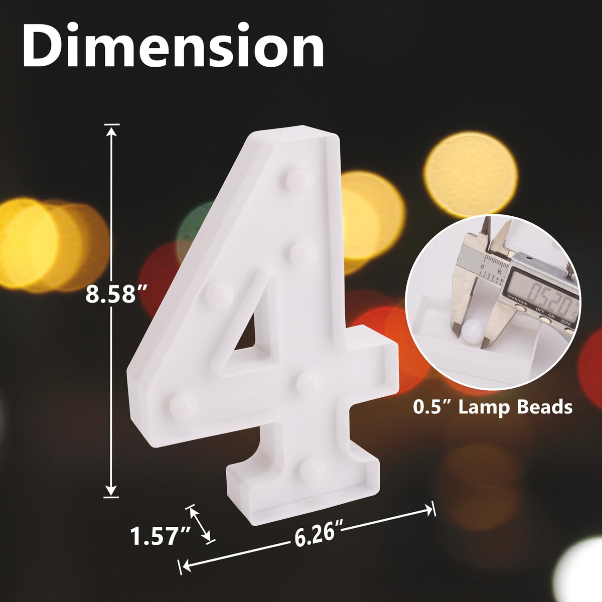 LED Marquee Sign Light Up Letters, Alphabet Light Up Letters Sign, Battery Powered LED Letter Lights for Night Light, Wedding, Birthday, Party, Christmas or Home Decor (Number 4)