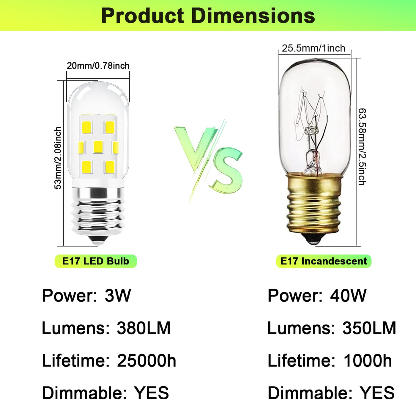 TAIYALOO LED Microwave Oven Bulb, 40W Equivalent, Dimmable, E17 Base, Natural White, Pack of 2, 380LM, 4000K