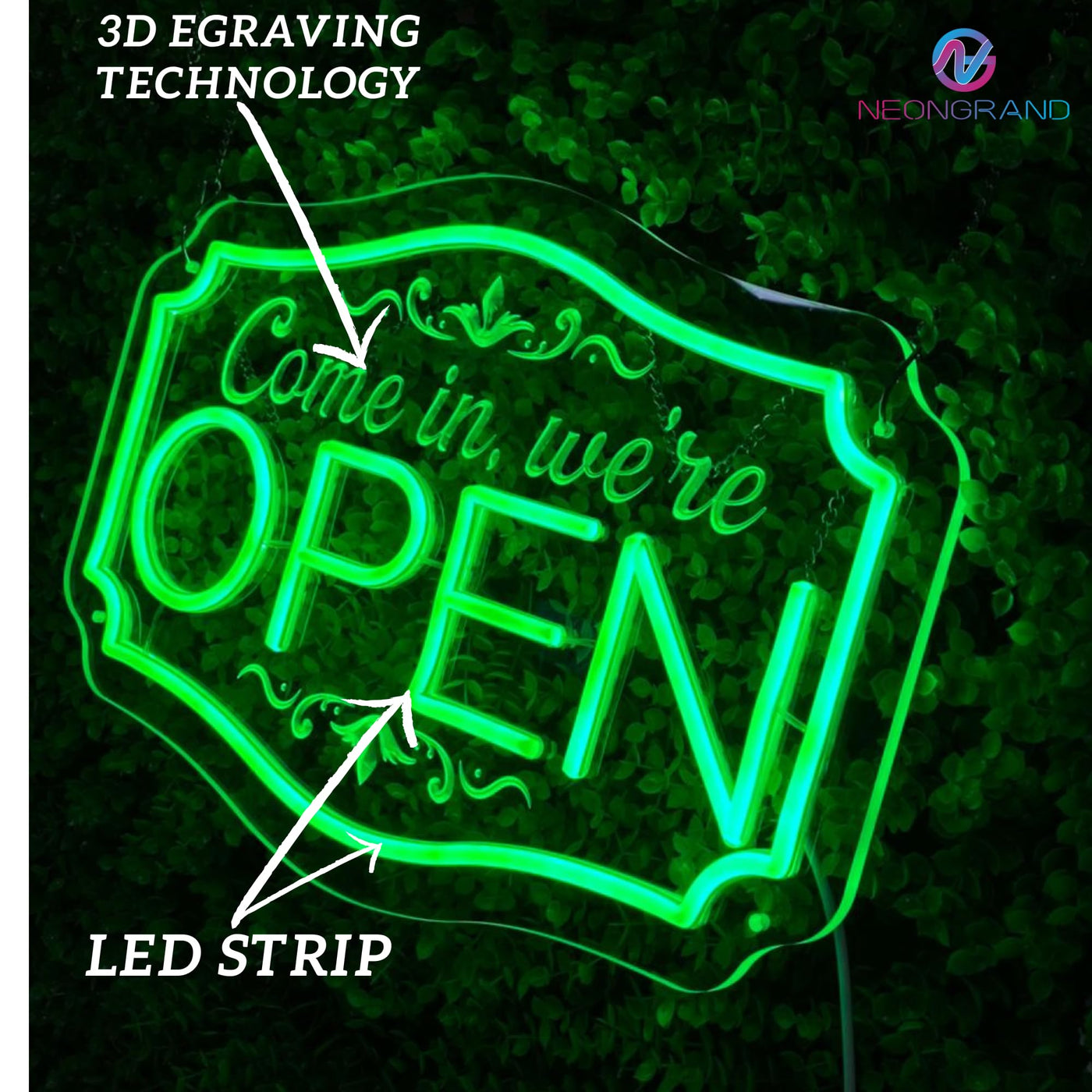 LED Neon Open Sign for Business, Adjustable Brightness Neon Lights for Party Bar Salon Stores Hotel Wall Decor Come in were Ope
