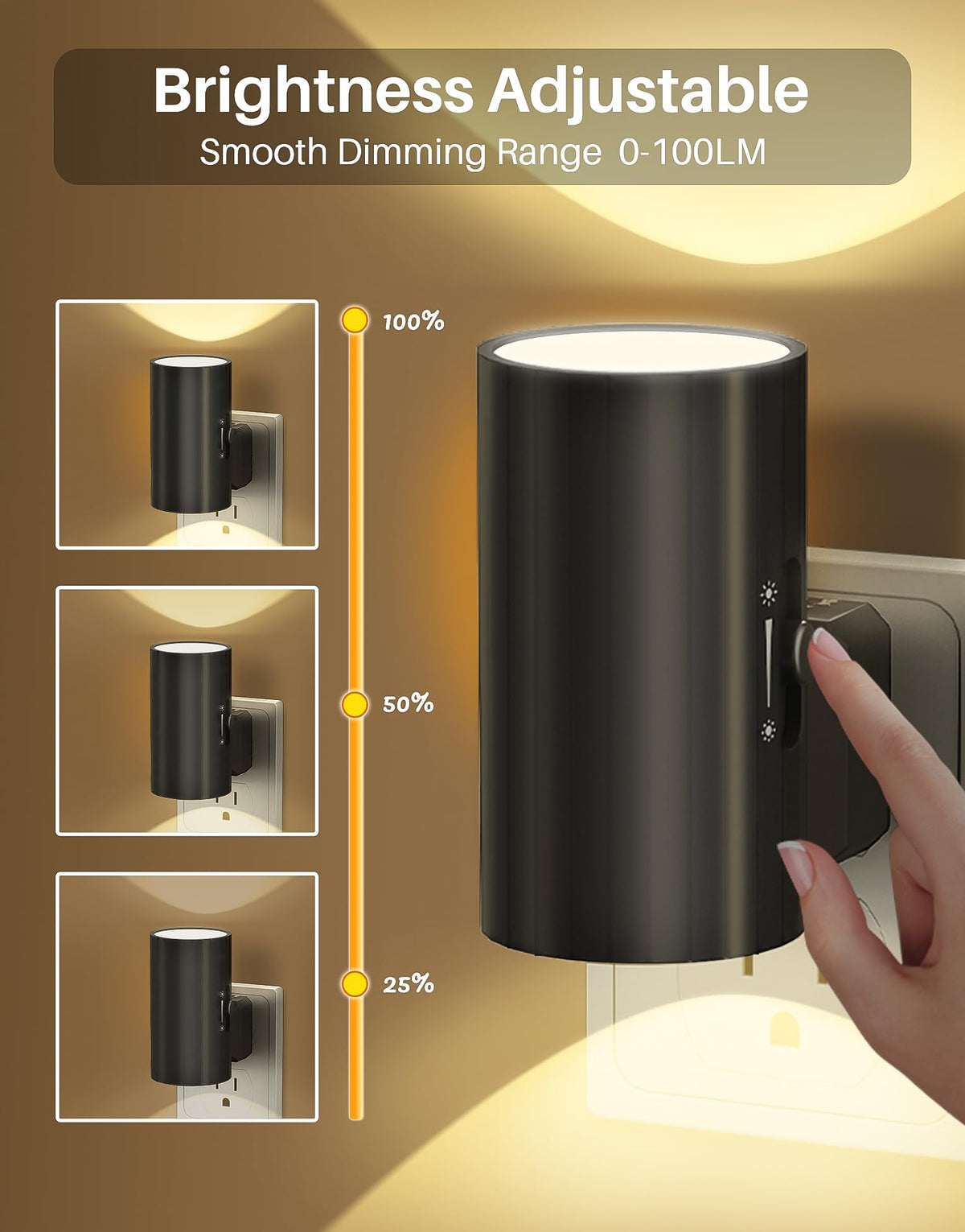 Night Lights Plug Into Wall, Plug In Night Light, Dusk To Dawn Night Light Plug In, Plug In Wall Light, Aora Night Light, Light Sensor Night Light, Night Light With Light Sensor, Night Light, Hallway Night Light, Dimmable Night Light ? Do You Need A Kind Of Night Light To Decor Your House And Light Up Your Home? ? Kkup2U Led Vintage Night Lights Plug Into Wall Is The Best Choice For You!!! Vintage Style Night Light Featuring A Black Cylindrical Minimalist Frame, Add A Beauty To Your House Decoration, Also Bringing A Practical And Ambient Lighting Solution To Your Home.. Features Material: Plastic Light Source:Led 3000K Brightness: 0-100Lm Input Voltage:Ac100-240V 50-60Hz Led Power: < 1W Control Mode: Light Sensing This Led Night Light Have A Sensor, Wyhich Can Automatically Turn On In Dark And Automatically Turn Off In Light Conditions. With 3000K Soft Night Light Ideal For Various Settings. Perfect For Hallways, Bathrooms, Bedrooms, Kitchen And More, Offering Safe And Comfortable Nighttime Illumination For Children, Seniors, And Pets, Catering To The Needs Of Every Family Member. The Brightness Of This Plug In Wall Light Can Be Adjusted From 0-100Lm, Which Can Meet Your Different Needs. This Plug-In Night Light Is The Ultimate Guide In The Darkness That'S Eye-Friendly, Grab This Amazing Led Night Lighting That'S Not So Strong For The Eyes.