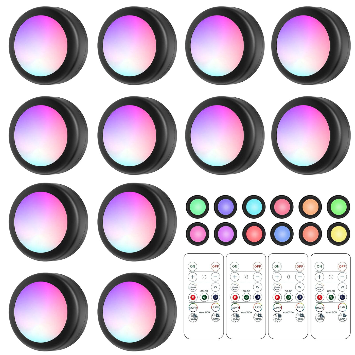 Q: Are the puck lights suitable for creating ambiance?A: Absolutely! With 16 changeable colors and three light modes, these puck lights are perfect for creating a pleasant, fun, and romantic atmosphere in any space.