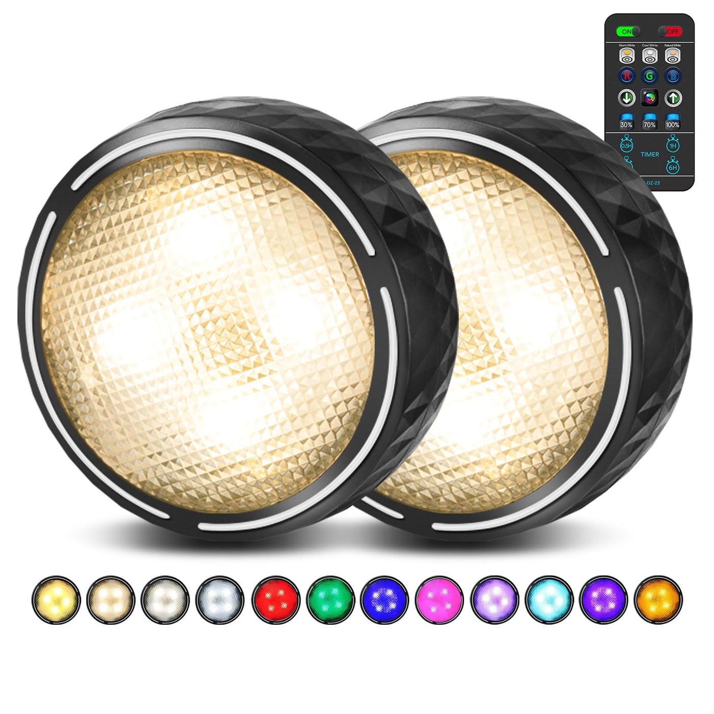 LED Puck Lights with Remote Control, Battery Operated Wireless Closet Lights, Under Cabinet Lights Stick on Tap Light Push Light